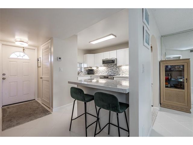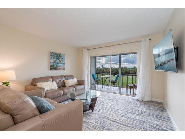 UPDATED 2BR/2BA SPECTACULAR PGA GOLF VIEW ON 10TH FAIRWAY. Open, large eat-in kitchen w/HIGH CEILING, NEW APPLIANCES, LARGE QUARTZ COUNTERTOP & TILEED BACKSPLASH. Arched walkthrough for easy service to DR. FULLY FURNISHED w/high-end leather sleeper sofa; Updated Master Bathroom, New electric panel, 18" ceramic tiles on an angle throughout. Tankless HTWH. 2nd BR w/french doors & Bahama shutters. Recreation Lease PAID IN FULL! Amenities include Restaurant, Billiard Room, Bbq/Picnic Area, Clubhouse, Courtesy Bus, Exercise Room, Heated Pool, Library, Putting Green, Sauna, Shuffleboard, Tennis, Pickle Ball, Vehicle Wash Area, Electric Car Charging Station. Close to shopping, dining, highways, International Airport and top rated medical facilities. 15 min. to beach. MOVE IN READY!