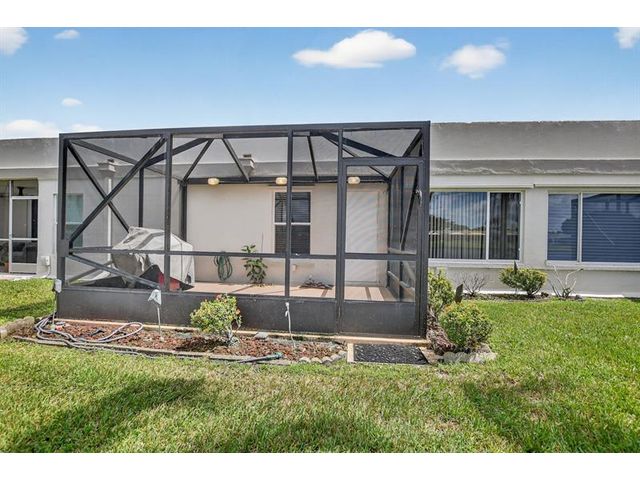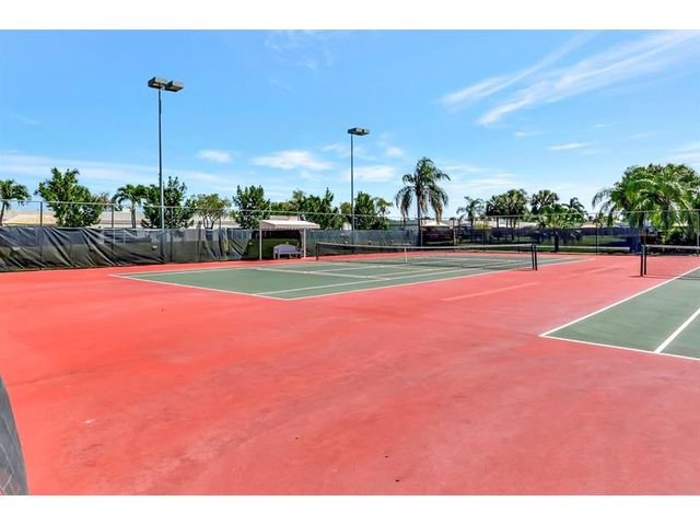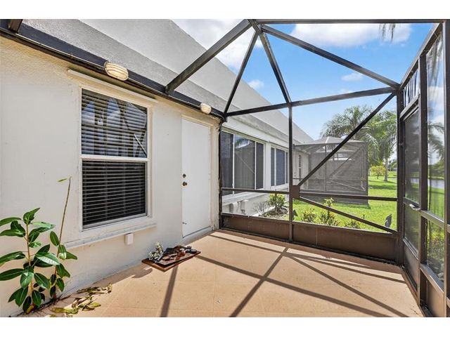 Stunning View from a Spacious Patio Nestled in a vibrant 55+ community of town villas, this updated home is freshly painted and ready for you to move in. Enjoy a spacious master bedroom with a peaceful lake view, a separate vanity area, and a large shower. The eat-in kitchen and the guest bedroom with its own bath are perfect for hosting visitors. Plus, you’ll have a one-car garage and access to fantastic amenities like tennis, pickleball, a heated pool, a gym, bocce, and more! Become part of a welcoming community that balances relaxation and fun. A/C under 1 year new….. Maintenance = Quarterly $850.00 HOA , Quarterly $288.00 Master Assoc. =( $379.33 per month ) HURRICANE PANELS IN GARAGE.