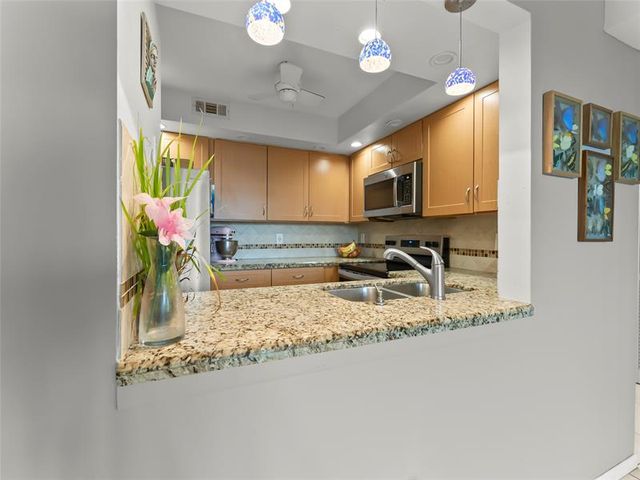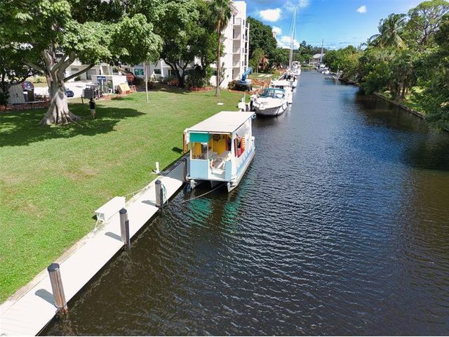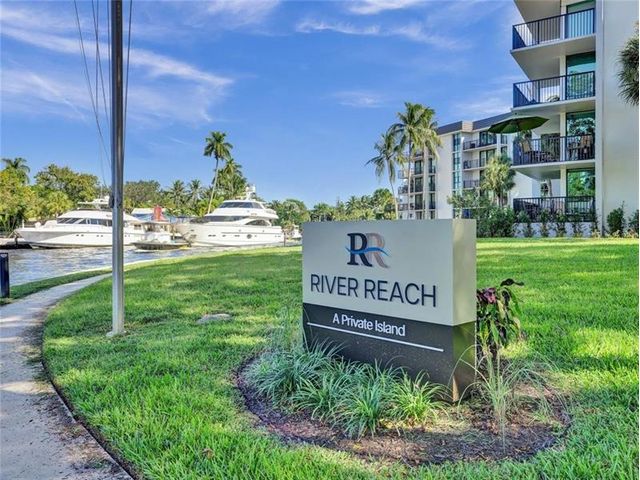 Make this Hidden Gem Island Community Your Home Today! This spacious top floor unit has lovely East City Skyline views across to North and South canal views of boats. Open plan living-dining area has neutral tile floors and kitchen features light cabinetry with granite counters. Large Master bedroom has walk-in closet and en suite bathroom. Guest bedroom has sliding door to balcony views. Hurricane impact windows and concrete restoration completed as part of Major Maintenance project . River Reach amenities include: gym, 3 swimming pools, 2 tennis courts, libraries, pickleball and community center. Maint fee includes cable, Wifi, water, sewer, garbage, pest control service. Dockage available up to 50ft vessel may have to be put on waiting list. Can Rent immediately. Boat included with sale