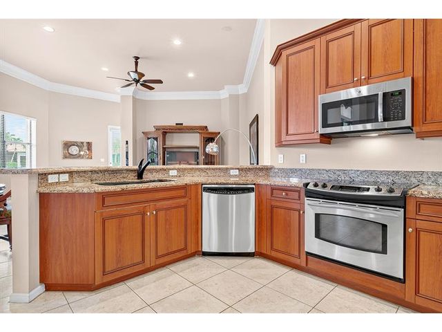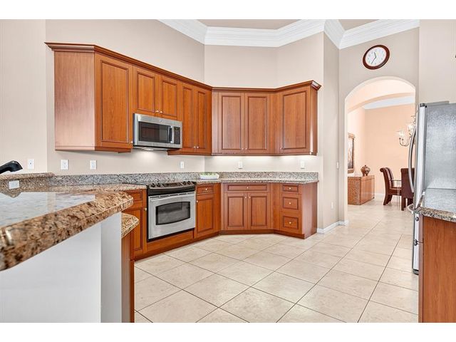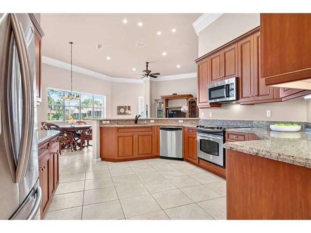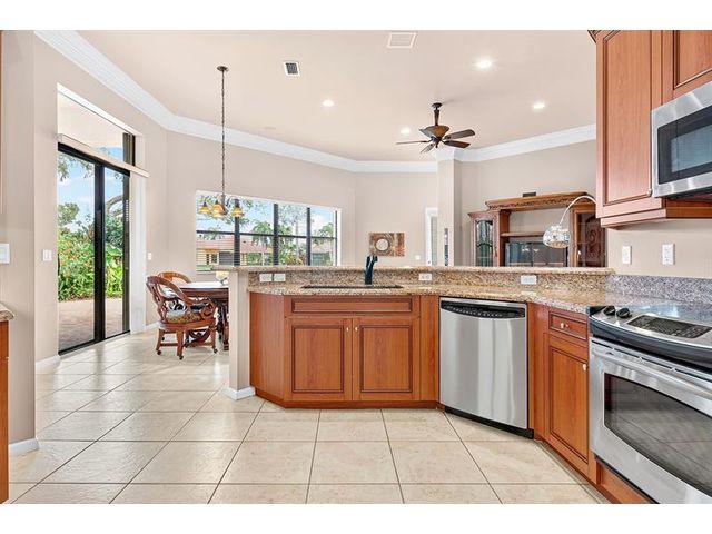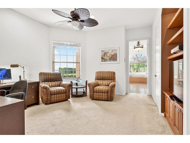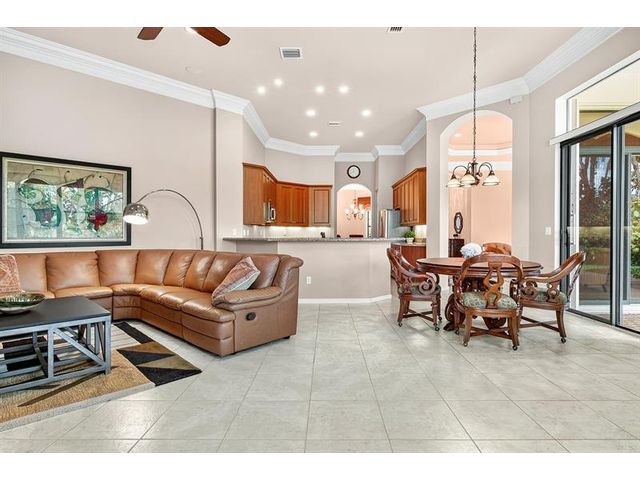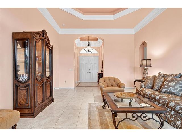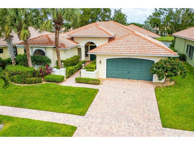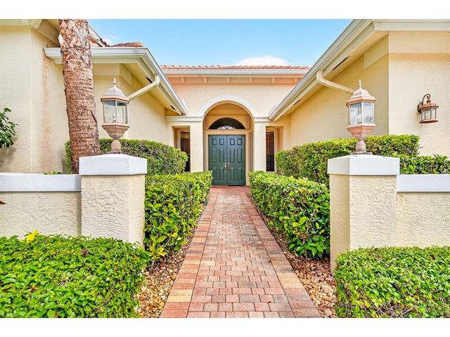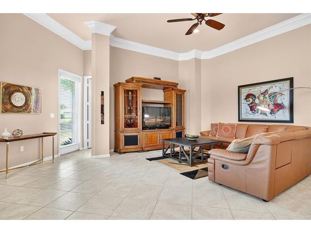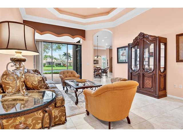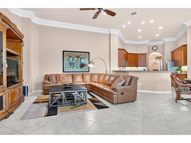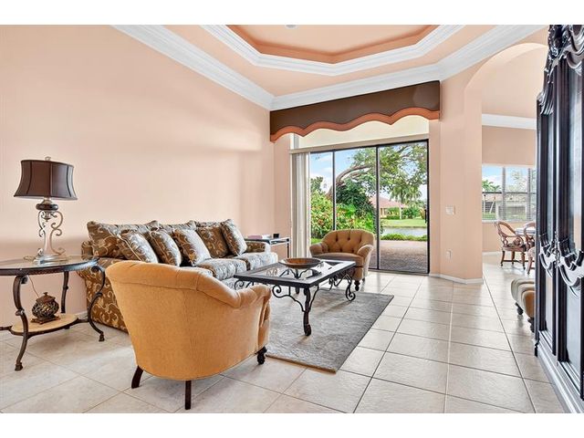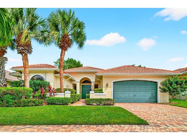 Tivoli Lakes | Popular Brunello floor plan (Estate Collection) boasting 3 BR + Den and 2.5 BA. Sited on a beautiful lakefront lot, this expansive one-level Mediterranean-style home offers an open floor plan with multiple entertaining spaces and a covered veranda surrounded by lush landscaping. Soaring 11 ft+ ceiling | Crown molding | Recessed lighting. This fine home offers a 2-car attached garage and an additional 2 parking spaces in the driveway. Tivoli Lakes is a premier gated 55+ community with just 324 homes and manned security 24/7. Relish the active lifestyle with a stunning clubhouse, social hall, card rooms, gathering room with bar, fitness center, and aerobics room. Tennis | Pickleball | Bocce Ball | Billiards | Pool. Convenient to PBI Airport, retail, and the beaches!