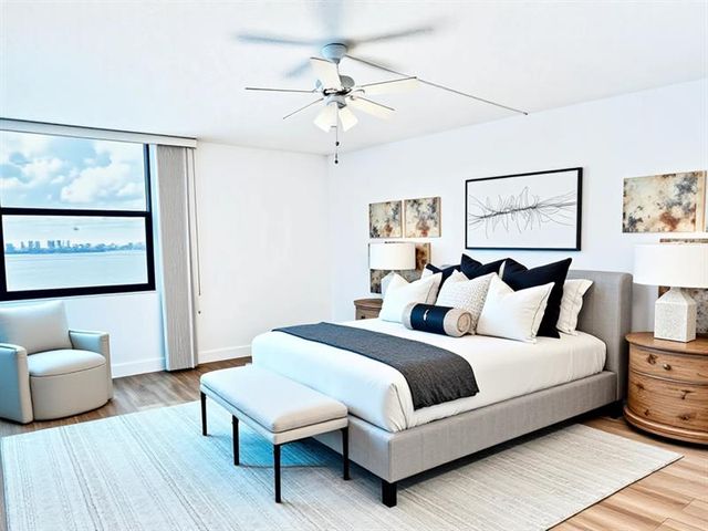Welcome to your new spacious lovely lakefront home! Gated secure community. LARGE (1120 square feet) Immaculate, turnkey Split floor plan. Luxuriously large bedrooms. Large walk-in closet. Pet friendly, 25lb by breed. Freshly renovated building. Superb resort amenities; 3 heated pools, 3 Jacuzzis 2 saunas, lighted tennis courts, GREAT gym & clubhouse, boating, barbecues, art room, library, billiards, ping pong, ballroom & BINGO! Spectacular views. Internet, hi speed cable included. All you pay is electric. Very close to Wilton Drive, the beach, I/95, the Turnpike. Long lakeside walking/jogging path. All boat activities permitted that don't involve gasoline. 650 credit required. Lake Emerald doesn't have a minimum down payment required. This is a Wonderful place to come home to.