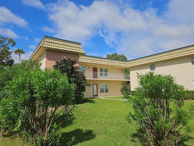 Wonderful, tree lined water & golf views from the glass enclosed lanai. This open and airy 2 bedroom 2 bath 2nd floor "A" plan comes partially furnished. Interior hurricane impact windows. This unit has a "barely lived in feel." Both baths have been updated. Vista Gardens is a very active, well maintained, well run 55+ community. While visiting the neighborhood, take a look at the amenities which include a large pool & spa, tennis, billiards, library, fitness center, craft room and game room and more. Mere minutes to toes in the sand, shopping, dining, cultural arts, healthcare and more. Room sizes are approximate. Buyer must verify.