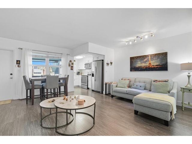 Updated and modern style, this highly sought-after vibrant 55+ community condo features new grey wood-look flooring throughout, an open kitchen with stainless steel appliances and quartz countertops, a spacious primary bedroom with ample closet space, and a beautifully remodeled bathroom. Enjoy your private screened balcony with serene pool and garden views. Community features include a fitness center, clubhouse, pool, BBQ area, shuffleboard, and active social club. HOA requires 20% down, 12 months of maintenance fees held in escrow, no leasing first year, 30day min and 6 months max, secure parking and gated access. Conveniently located near Hard Rock Casino, Dania Pointe, Ft. Lauderdale Airport, and the beach. Mortgage savings may be available for buyers of this listing.