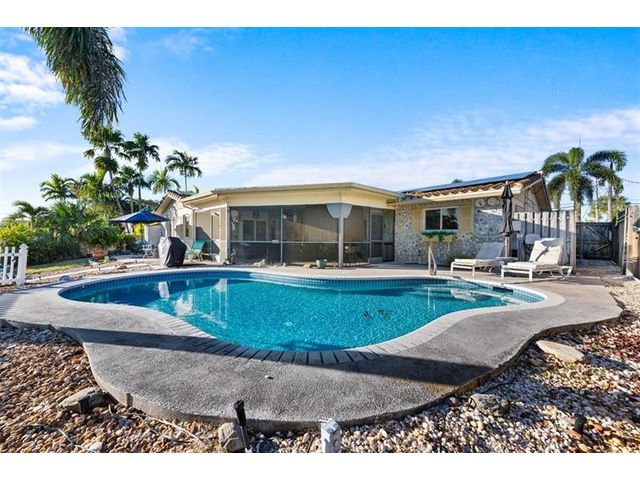Welcome to your waterfront paradise in Fort Lauderdale! This 3-bedroom, 2-bath single-family home sits on 75 feet of canal frontage with ocean access, perfect for boating enthusiasts. The home features a new tile roof (2017), impact windows, solar panels for incredible energy savings, updated kitchen and baths, and tile flooring throughout. Enjoy outdoor living on the large screened patio overlooking the pool, or dock your boat at the private dock. Ample storage, a circular driveway with plenty of parking, and a prime location close to beaches, restaurants, shopping, and nightlife make this a must-see!