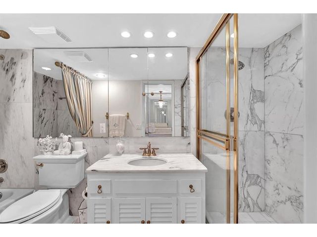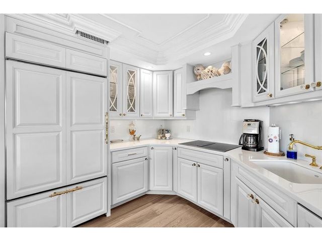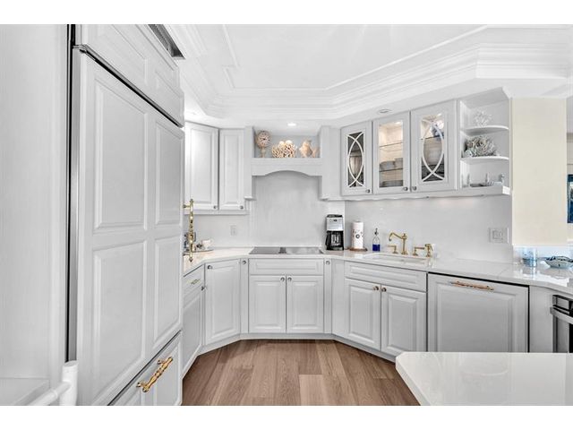 A JEWEL BOX-Walk in and experience ultimate elegance done in Palm Beach Coastal with Gold Appointments-This designer unit was the builder's model featured in Florida Design Magazine-Spacious corner unit has expansive views of the Lake and The Boca Resort accented by beautiful gardens and Pool views ! Large Living room has 2 seating areas-Magnificent Open Gourmet Kitchen done in exquisite white includes a sub-zero refrigerator-Dining Room facing the Water captures tranquility ! Over-sized bedrooms , and a separate Laundry room with a sink- This is a one-of-a-kind unit on Lake Boca ! You have never seen one like before ! Unit is furnished, Turn Key ! Service Animals allowed.