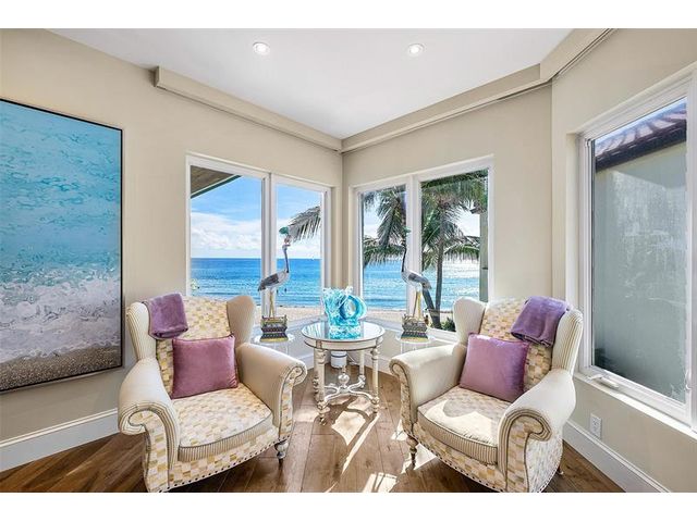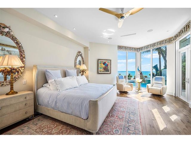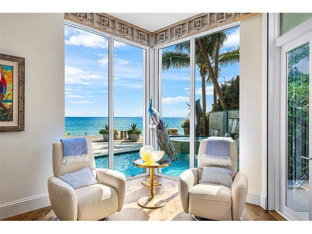 Indulge in the pinnacle of coastal luxury at this direct beachfront estate, blending timeless design with modern sophistication. This residence offers breathtaking ocean views, elegant living spaces, & exquisite craftsmanship. Entertain effortlessly with thoughtfully designed living areas, a chef’s kitchen, & seamless flow to oceanfront terraces with pool & spa. A spectacular 1,000-bottle climate-controlled wine cellar serves as a true showpiece for collectors. The home includes two primary suites, each with spa-inspired baths & private sitting areas, & two additional bedrooms plus a well-appointed office. With refined architectural details & a prime beachfront location perfectly situated between Boca Raton & Delray Beach this estate captures the very best of the South Florida lifestyle.