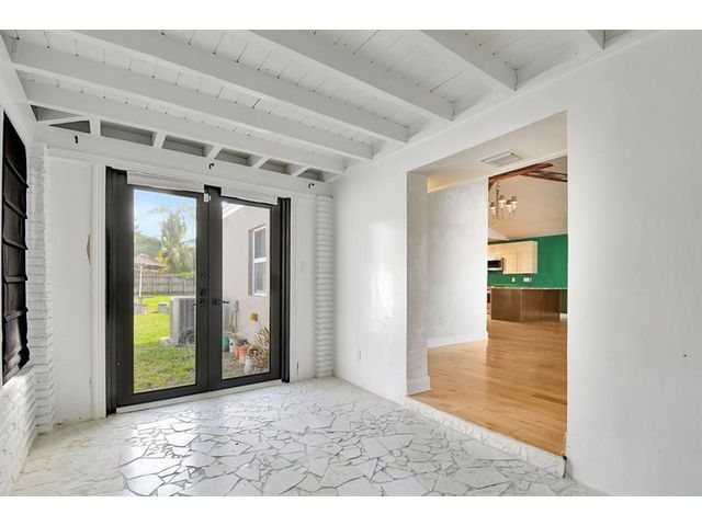 Welcome to this beautiful Open Concept 3/2+Bonus Room Split Floor plan Home located East of US1 in Hollywood Lakes area. This home has all the upgrades HIGH VAULTED CEILINGS w/Wood Beams, an open concept kitchen great for entertaining, granite countertops, GAS Stove, Viking Fridge, Birch Wood floors, Stone & Porcelain tiles, tankless water heater, XL Primary bedroom w/walk-in closet, Impact Windows & Impact French Doors & a Tile Roof. Enjoy SFL Living Dining & BBQ under the covered patio on oversized 8,200 SqFt LOT w/NEW WHITE PVC Fenced in backyard w/plenty of room to build your dream pool! Bike to famous Hollywood Beach w/its 2.5 Mile long Broadwalk, Minutes to private, public or Charter Schools, Downtown Hollywood, Gulfstream Park, Aventura Mall, Restaurants, MD offices, Hospitals...