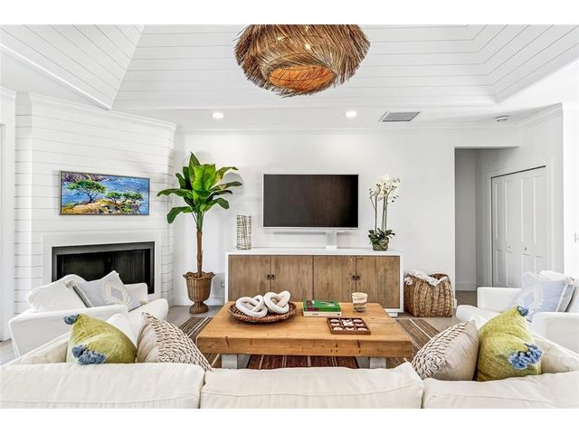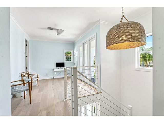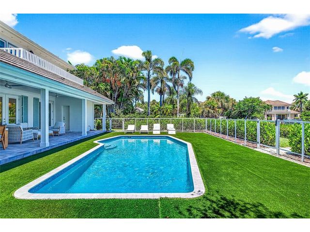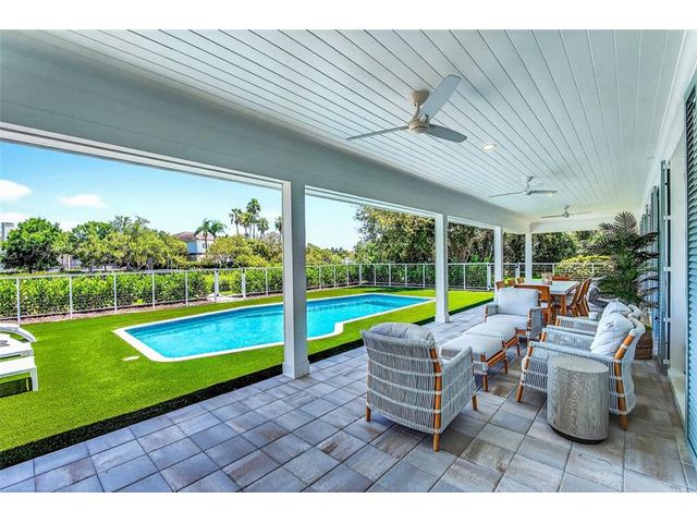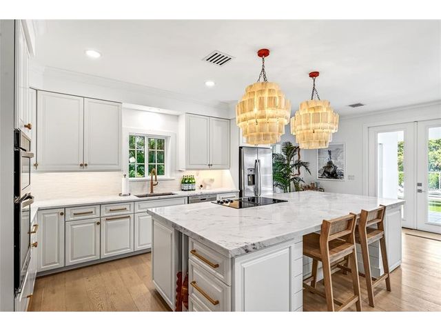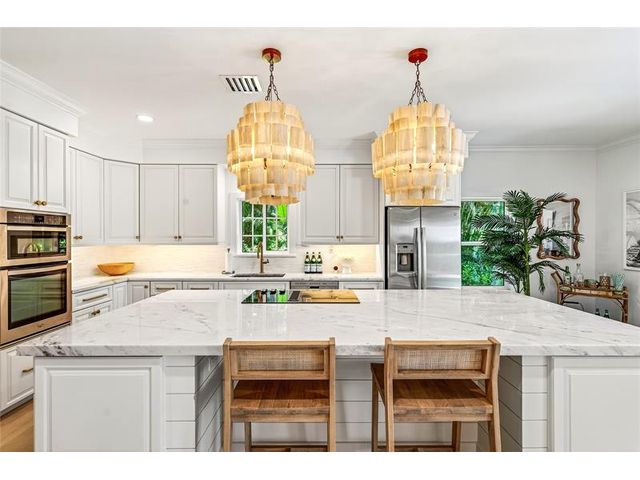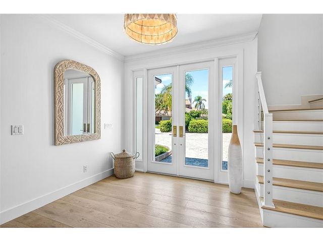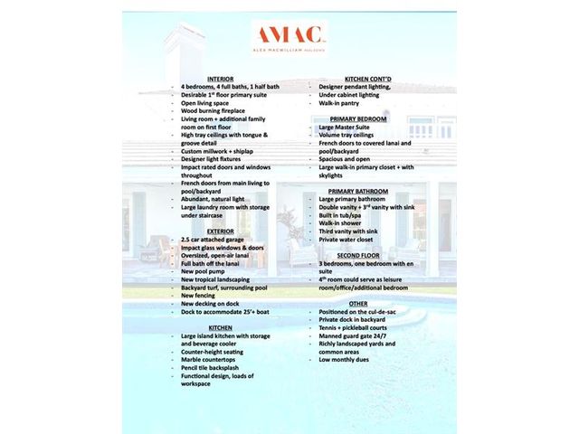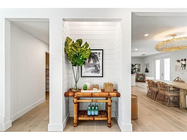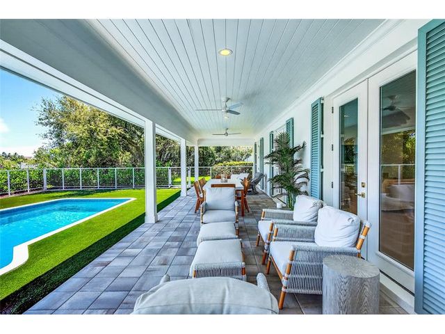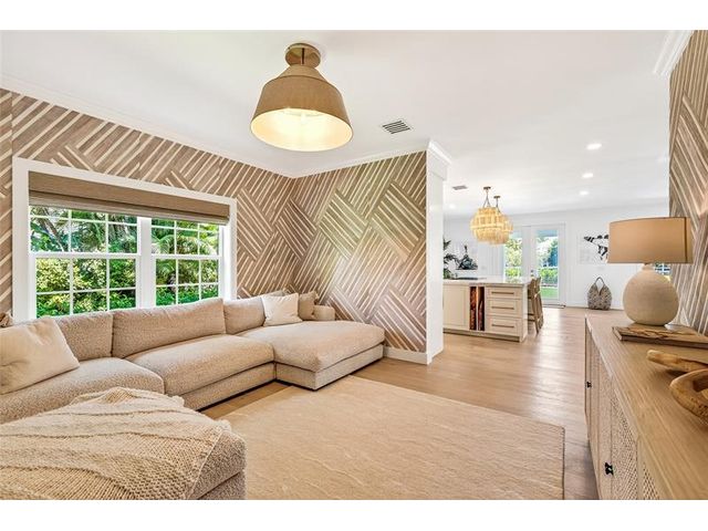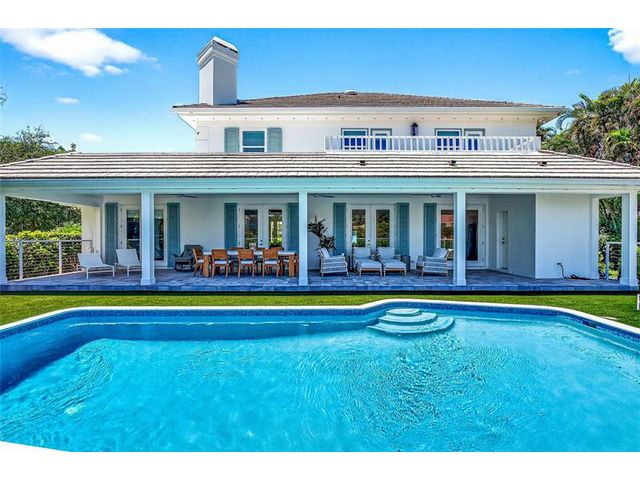 Stunning riverfront home completely reimagined with designer finishes. Relaxed coastal living with refined island-inspired style. Crisp white architectural lines, fresh coastal hues, open-concept light-filled interiors, natural textures, white oak flooring, custom lighting and millwork, elevated yet laid-back feel throughout every room. Multiple living spaces, large island kitchen, indoor/outdoor dining, 1st floor primary suite overlooking the pool, walk-in closets, option for 5th bedroom, all impact glass, new tropical landscaping, whole house water softening system, oversized 2car garage.