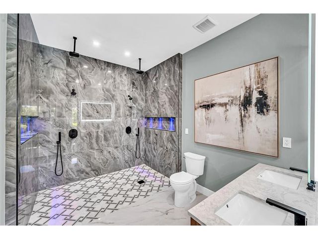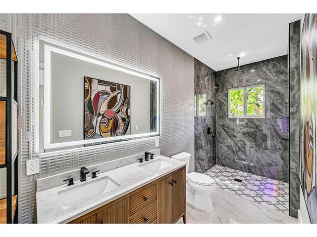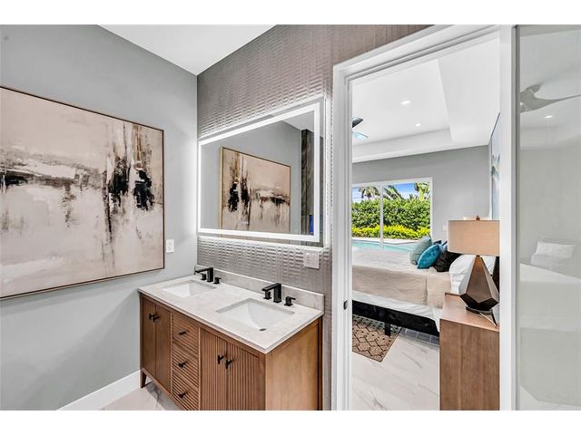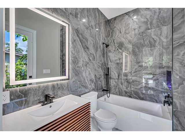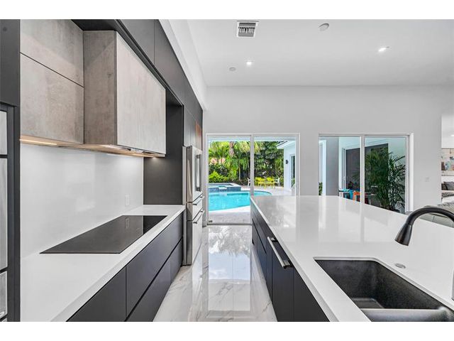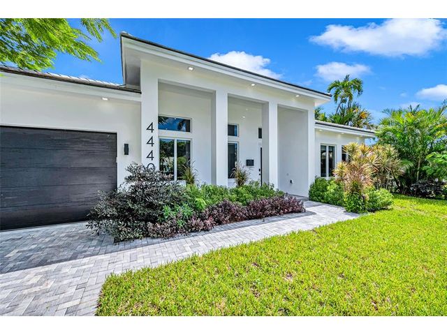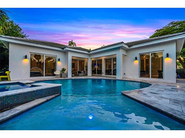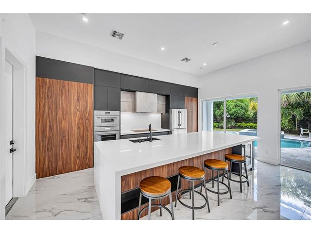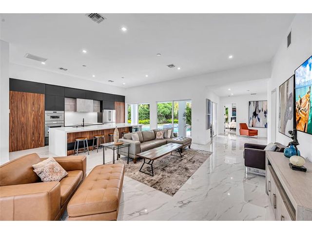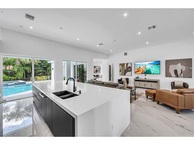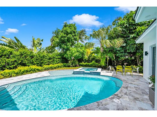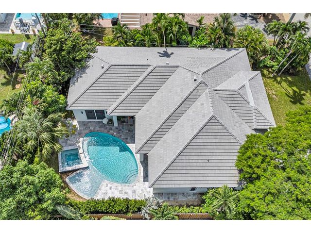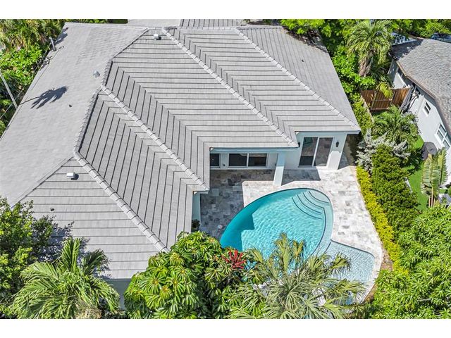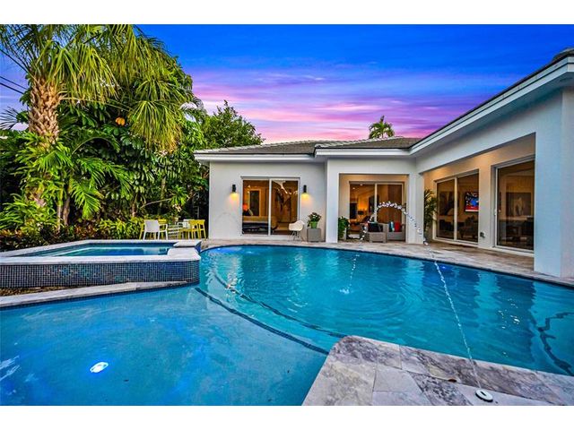 Experience luxury in this 2025 new construction offering over 3,480 sqft under air with soaring 12–14 ft. ceilings and an open-concept design. The Designer Italian kitchen stuns with Thermador appliances and a massive 14 ft quartz island. Four spa-style en suites plus a flexible family room (optional 5th bedroom). Advanced smart home with voice activation and automated lighting. Outdoors, a private landscaped oasis showcases a heated saltwater pool with bench seating for 30 people, 12 person spa, & marble surround - Perfect for pool parties & entertaining! Extras include a gleaming epoxy garage equipped w/ EV charger. Pitched tile upgraded roof, superior to flat roofs found in many modern builds. Prime location near Wilton Drive, beaches, airport & Brightline on a quiet no pass-thru street
