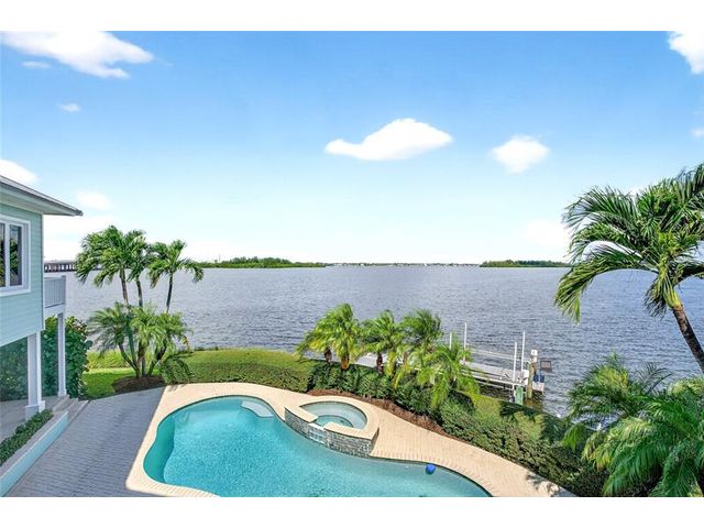 Direct riverfront POINT LOT! 137'+ of deep water frontage with unobstructed views of the Indian River Lagoon. Privately landscaped with feature lighting. On culdesac, NO HOA. Quality CBS construction + hardy board on 2nd level. Reinforced seawall, Trex dock with 9000lb lift equipped with water & electricity plus a fish cleaning station. Premier boating lifestyle, fit for a large craft! 3536SF of light-filled living space and wide water views from every room. Indoor/outdoor entertaining in this spacious 3bed 3.5bath floorplan. Private elevator, Impact windows, heated pool/spa, Flood zone X500.