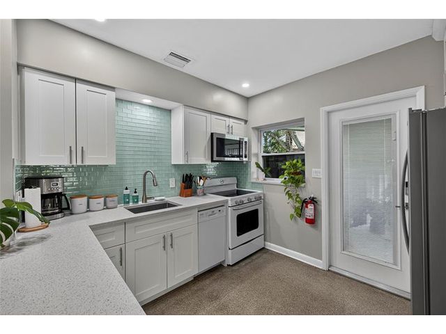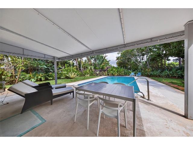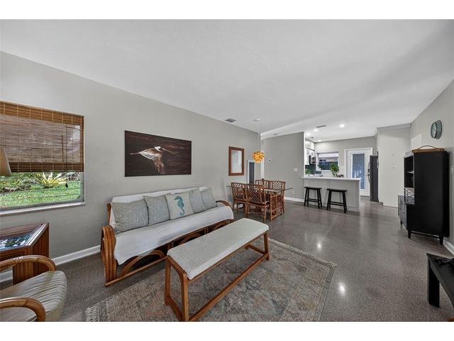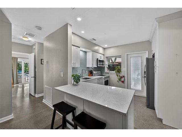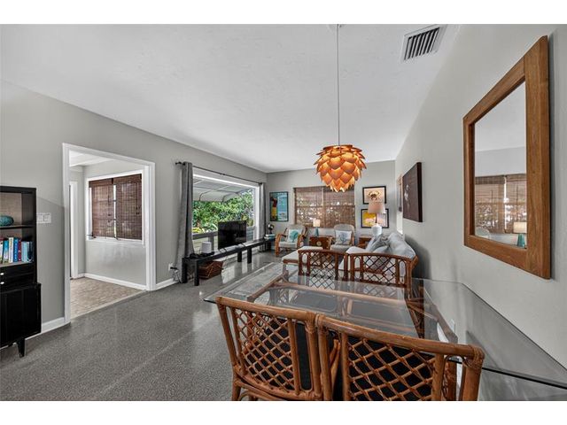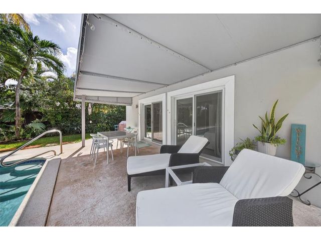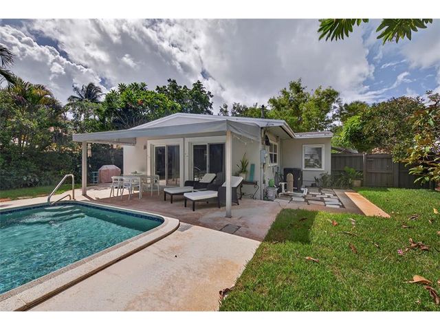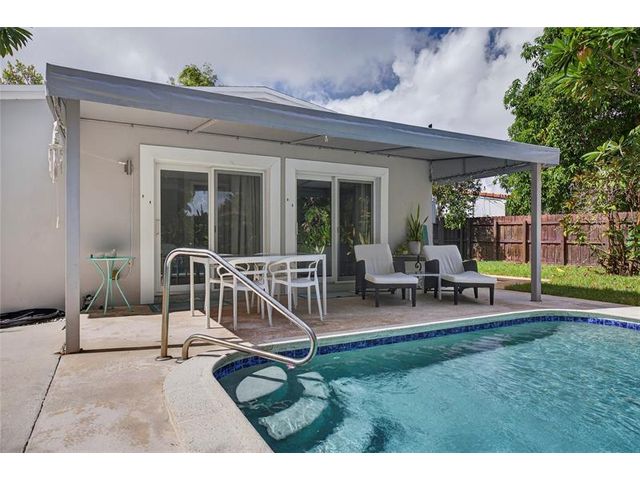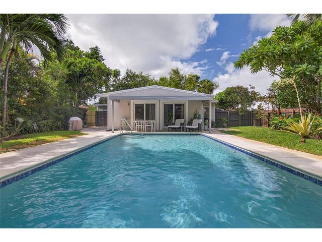 Tranquil pool home with lush, tropical private back yard and large (15’ x 30’) heated pool. Set on 8,876sf of professionally landscaped, spacious property, enjoy life poolside on the covered patio. Front Florida room leads into the recently renovated open kitchen with quartz countertops and plenty of storage space. The bathroom was also recently renovated with a convenient walk-in shower. Both bedrooms have direct access to the back patio via impact glass sliding doors. Restored terrazzo floors throughout the home. Sewer lines replaced all the way to the street with PVC in 2019 and new electrical panel with buried electrical service. Wonderful location -- easy to get to Wilton Manors or to NE 13 Street corridor, and only 1.5 miles from Fort Lauderdale beach. Come feel the relaxation!