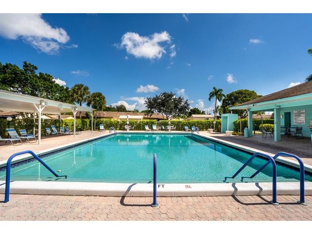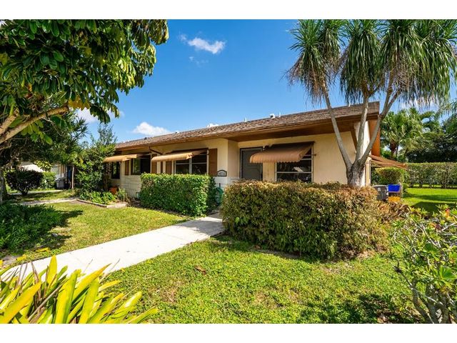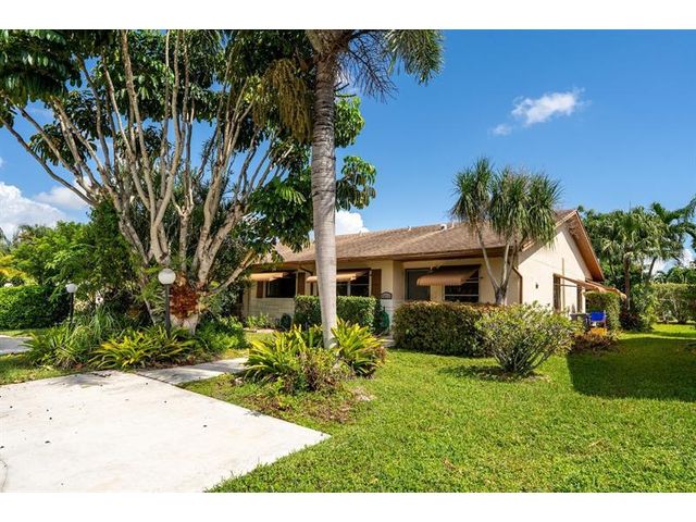 Corner villa at Delray Villas III. There is endless possibilities as this home is in need of modern updates & aesthetic improvements. Each bedroom has a large walk in closet and their own ensuite bathroom. There is a stackable washer & dryer located in the 2nd bathroom closet. Perfect for a gardener as your lot extends approximately 22 feet in the back. This 55+ community has a satellite pool & an amazing community complex just a short drive away. Community complex is very active with Billiards, cards, arts & crafts, gym, tennis, jacuzzi, and heated pool. Our patio pavers are grandfathered in and a BBQ is allowed. Buyer must have 620+ credit score and 25% down. There is a capital contribution of $1500 from the buyer required at closing. HOA takes care of lawn/shrubs in front.