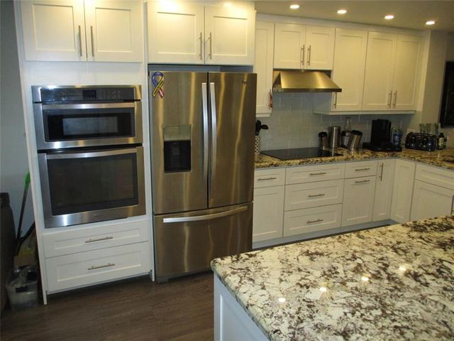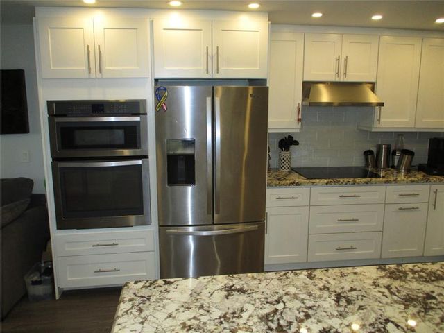 RARE completely renovated open-concept condo in Granville on Crown Island section of Kings Point (55+). Walls were removed. Extra insulated ceiling. Eat-In kitchen features updated cabinetry, granite countertops, and SS appliances, flowing into the dining and living areas. Relax on the enclosed (Bigger than pictured) patio with serene lake views. Spacious primary suite offers 2 closets including a walk-in and updated bath with dual Vessel sinks, granite counter tops & and shower. Building highlights include a 2nd-floor outdoor patio for residents to gather or unwind. Granville is a double gated community with resort-style amenities including clubhouse, pools, fitness center, tennis, pickleball, theater, and shuttle service. Conveniently close to shopping, dining, golf, and highways.