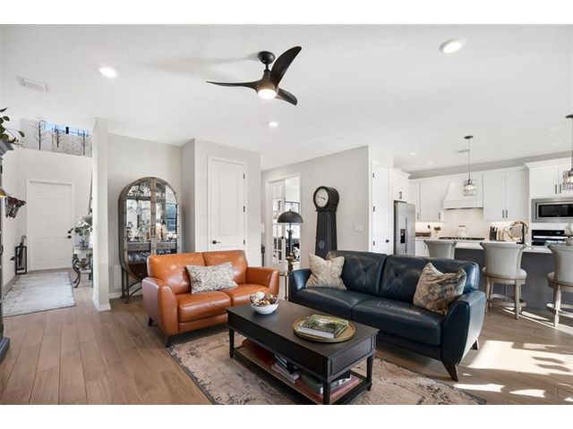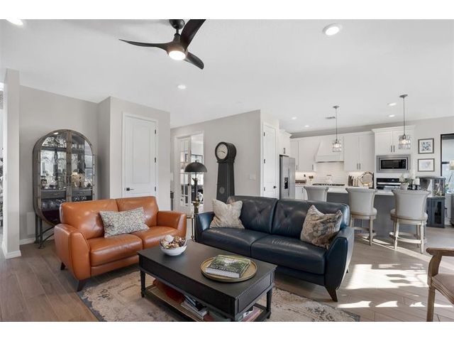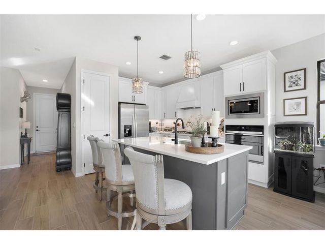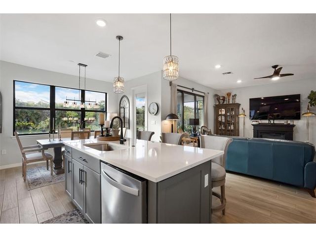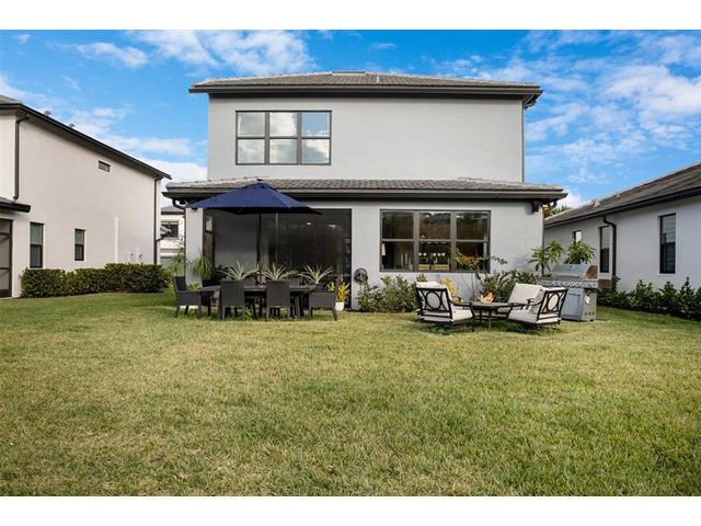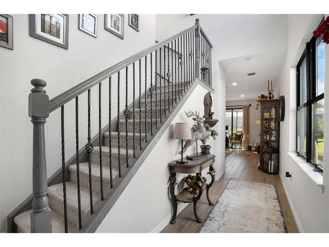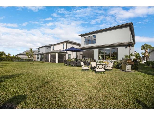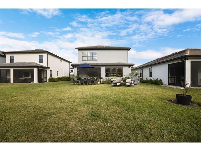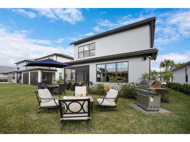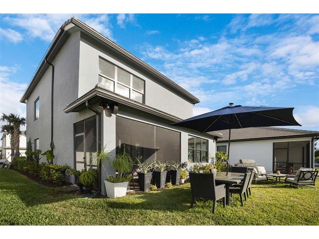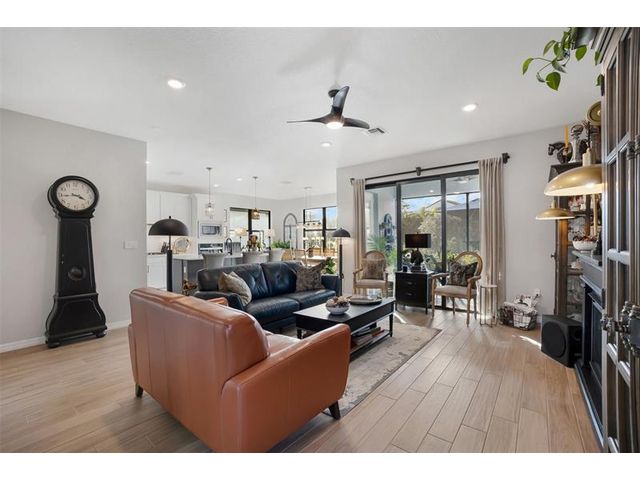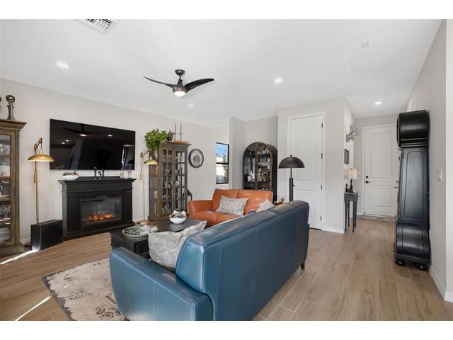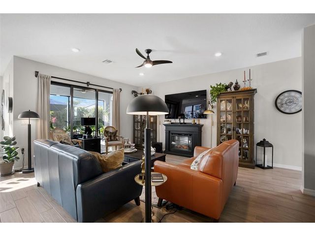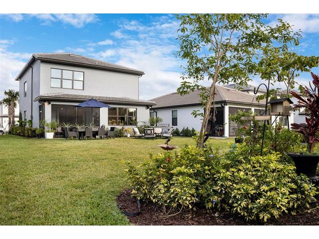 Enjoy resort-style living in Oak Tree, a premier gated community. Built in 2023, this 3-bedroom, 2.5-bath home includes a two-car garage and modern finishes. The kitchen features quartz counters, wall oven, gas range, and an island that opens to the living area. A dining room with backyard views connects to the screened patio. The first floor offers a flex office with French doors, while upstairs a den separates the bedrooms. The primary suite boasts a tray ceiling, walk-in closet, and spa-style bath with oversized shower. Built to current codes with impact glass, high ceilings, new roof, and appliances under warranty. Community amenities include a clubhouse, pickleball courts, barefoot bar, resort-style pool with cabanas, BBQs, fire pits, fitness center, dog park, and more.