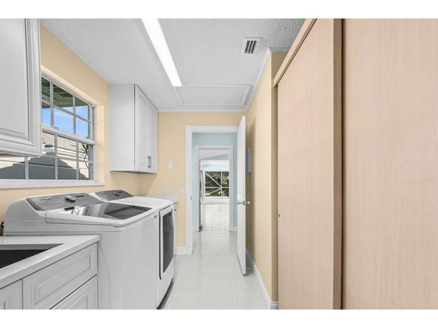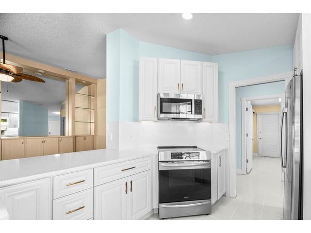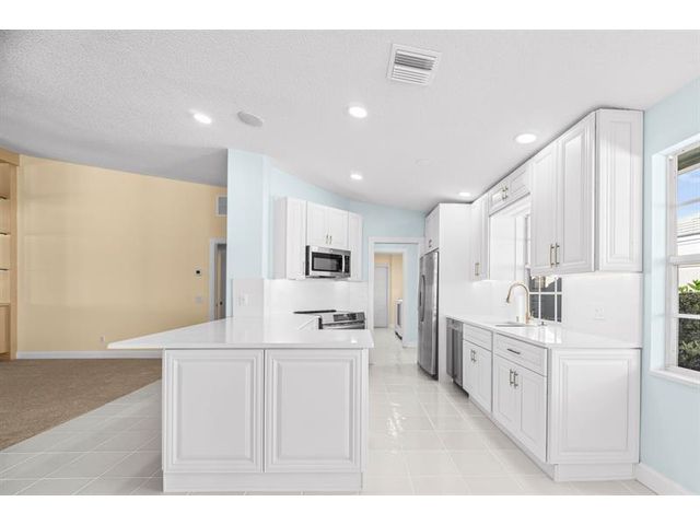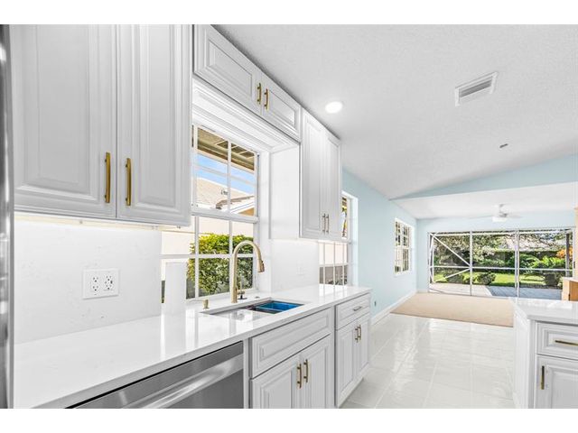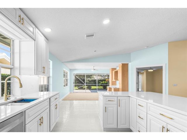 Welcome to your totally redone DiVosta 2bed, 2bath + den/office in the desirable gated community of Gardens Oaks. Completely redone kitchen, baths & laundry. All new cabinets and quartz countertops. All new stainless appliances, all new smart LED lighting throughout. Gardens Oaks has a manned gate, low HOA, heated and cooled community pool, pickleball, tennis and beautifully maintained grounds. 12 year old roof, 7 year old AC with new coil in 2025, 2022 hot water heater, 2 car garage. Large screened patio and beautiful fenced back yard. Complete replacement of polybutylene pipes (2025). This one is all new and move in ready!!