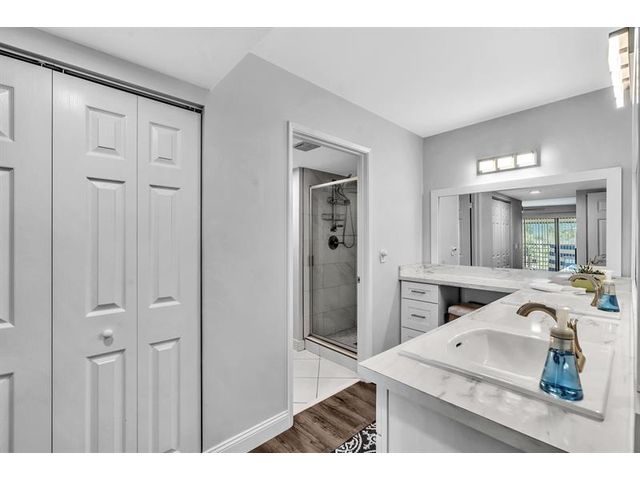 BEAUTIFUL REMODELED SPACIOUS 2 BEDRROM 2 BATH; LAMINATE FLOORING ALL THROUGHOUT; NO POPCORN, FRESHLY PAINTED; CROWN MOLDING; PLANTATION SHUTTERS; REMODELED KITCHEN, NEWER STAINLESS STEEL APPLIANCES; NEWER W/D FRONT LOADING; HUGE SCREENED BALCONY WITH STORAGE CLOSET; WORK OUT GYM IN THE BUILDING; 4 POOLS; TENNIS AND PICKLE BALL COURTS; ENJOY THE TRANQUILITY OF CAMINO REAL VILLAGE; NEAR TO TOWN CENTER MALL, MIZNER PARK, SUGAR SAND PARK, BEACHES, MAIN FREEWAY ROADS. REALTORS PLEASE REFER TO BROKER REMARKS FOR ADDITIONAL INFORMATION.