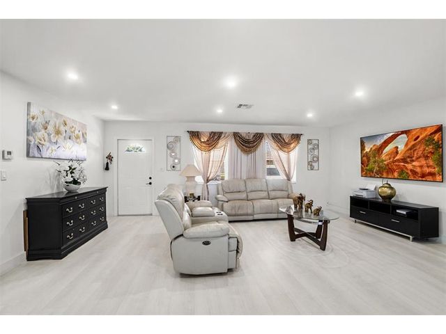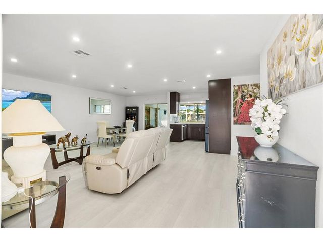 Fully remodeled pool home with water view. No expense has been spared. Roof is 5 years old, tankless water heater,new washer/dryer. New driveway and artificial turf throughout exterior. New pool pump and new windows. New kitchen and bathrooms. New electrical panel with breakers. Home can be used as a 4 bedroom or you can rent out the opposite side of the home as a 1 or 2 bedroom apartment. Seller offering up to $2000 credit toward buyer closing costs if buyer uses sellers preferred lender. Buyer is not required to use the preferred lender to purchase the property.