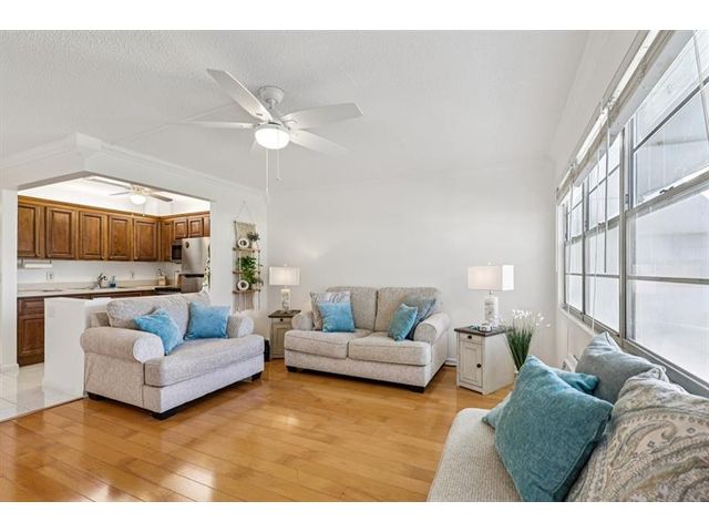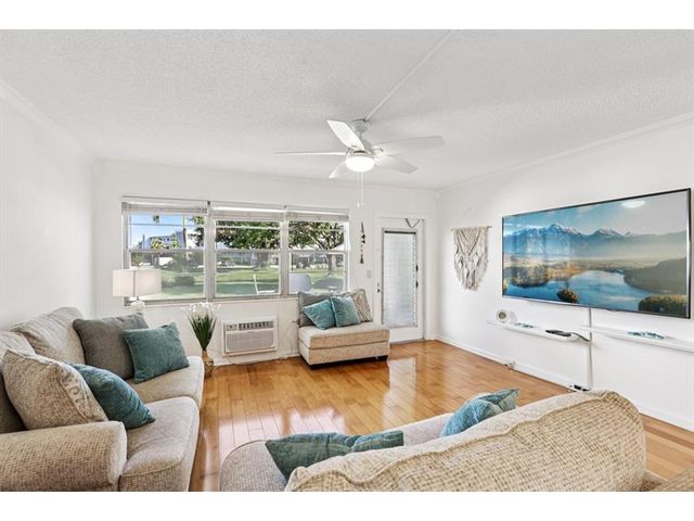 Welcome home to this spotless, updated and cheerful 1 bed 1 bath home in delightful Century Village East. Minutes to everything you need and want (shopping, restaurants and beach), CV offers its residents amazing amenities and social activities. The home features new AC, new fans/lighting, new appliances, new closet doors, new furnishings, new electric panel and crown molding. A new roof was just installed! No carpet anywhere! Wood laminate flooring in the living room and bedroom, tile in the kitchen and bathroom. Grill steaks at the open patio overlooking the lake. Laundry room is just next door. Clubhouse is just nearby. From the rear lanai, enjoy direct access to your vehicle! Just bring your suitcase and begin enjoying the amazing Florida lifestyle you've been dreaming of!