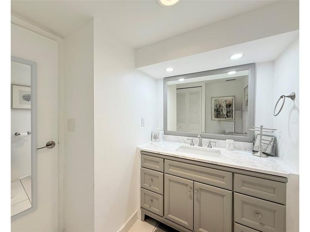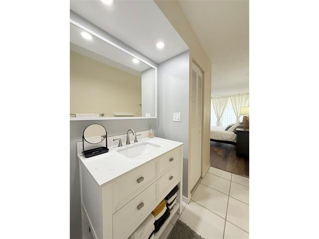 STYLISH, MOVE-IN READY RETREAT! Step into this ELEGANT & BRIGHT 1BR/1.5BA condo, sold turnkey furnished and ready to enjoy. The sleek white open kitchen features stunning gray granite countertops, while the RENOVATED BATHROOMS impress w/ white QUARTZ surfaces & MODERN gray-and-white vanities. Relax in the spacious bedroom with rich wood-look laminate flooring & a luxurious KING BED, or gather in the living area & kitchen with crisp white tile. Your long screened Florida room is perfect for unwinding and enjoying peaceful mornings or sunsets. Modern updates: roll-down shutters, water heater (2018), AC (2020). Located in an active 55+ community just steps from swimming pool, w/Civic Center offering heated pools, pickleball, bowling, billiards, tennis, basketball, fitness center & much more!