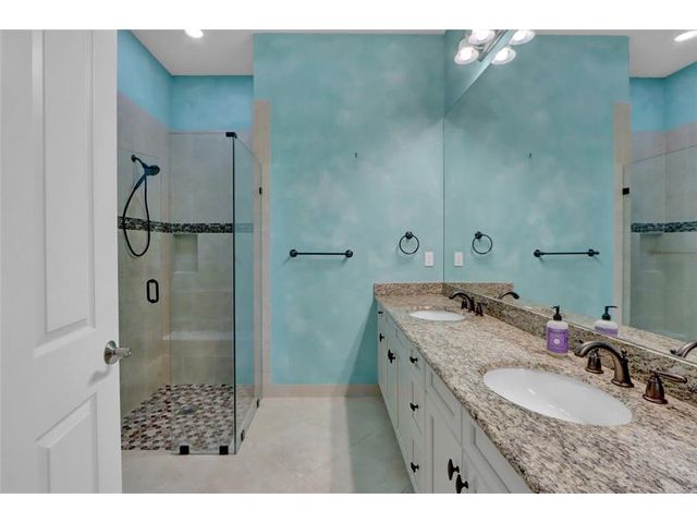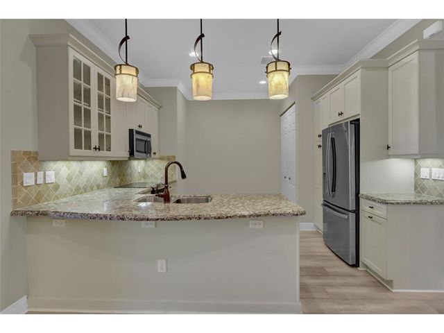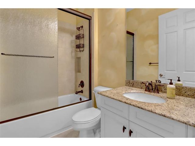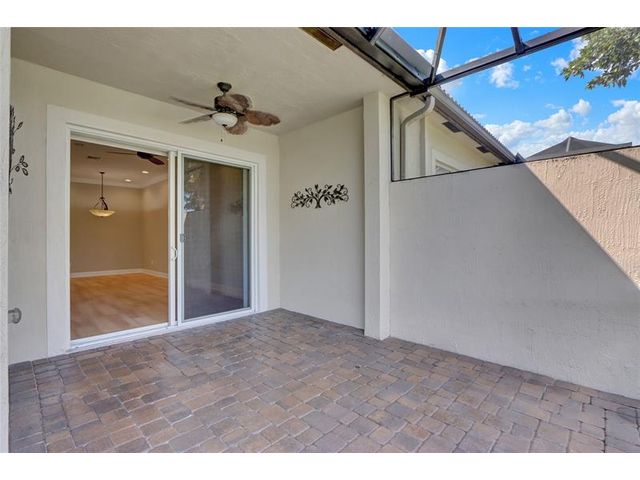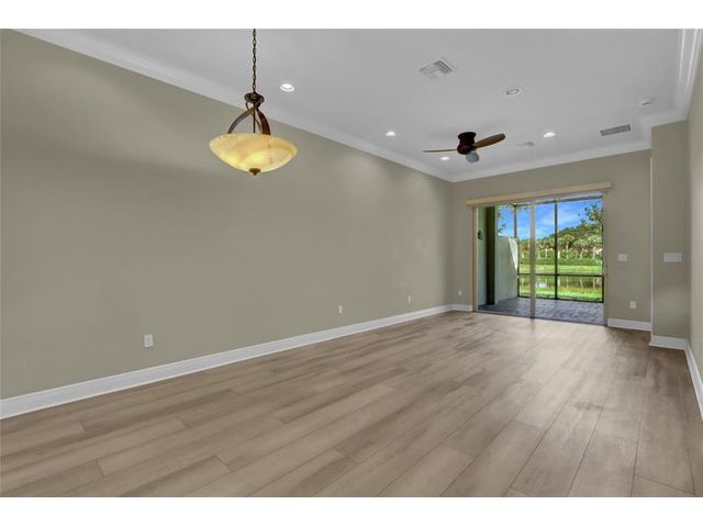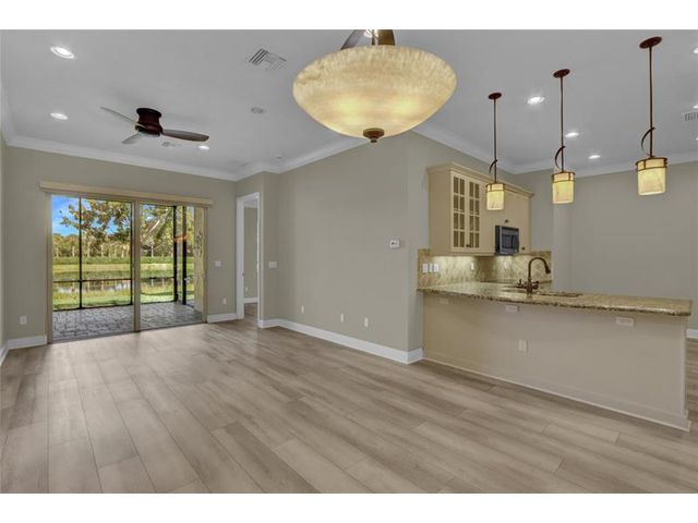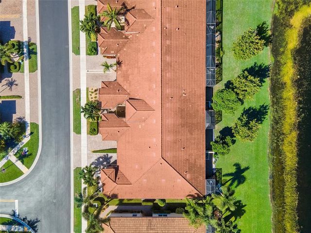 Move-in ready & meticulously maintained! This 2BR + Den, 2BA, 1CG Vittoria model offers worry-free living with newer major systems: electrical panel (2018), A/C (2022), water heater (2021), refrigerator (2023), epoxy garage floor (2023). Enjoy custom closets (2017), crown molding, high-hat lights & motorized LR shades. On a premium lake front lot, this designer decorated home features an open kitchen with custom cabinets, granite counters, marble backsplash, SS appliances. Primary suite offers granite bath, frameless shower & walk-in closet. Safety: impact windows, leaded glass entry, ADT security system. Relax on your screened lanai while taking in your lake view. Clubhouse, theater, café, pools, tennis & pickleball and more! No lease 1st yr own; 1 lease per 12 mo., 6 mo. min. 55+