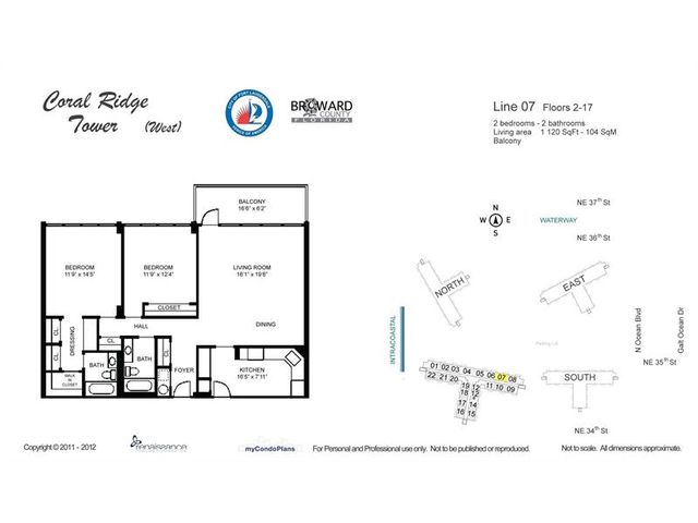 Fabulous Mid-Century Classic! Two bedroom and two bathroom apartment at Coral Ridge Towers Original with incredible Intracoastal and ocean views! Ready to move in and make it your own. New hurricane impact windows and doors installed. Located across the street from the beach and close to restaurants, post office, bank, grocery shopping and the water taxi. Watch the boats and yachts pass by in the large 30 x 60 heated and cooled pool directly on the Intracoastal. Putting green, outdoor grills, and a library and just some of the amenities. Financially Stable Building with Fully Funded Reserves. Low monthly maintenance includes Cable TV, 24 hour security and on site management. 55 plus, no pets, no rentals.