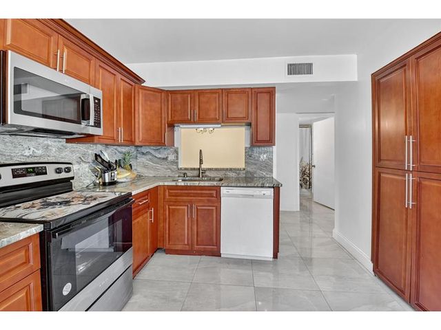 Beautifully remodeled 2bed/2bath condo in the heart of Lakes of Delray. Features new marble tile flooring & a stunning eat-in kitchen with wood cabinetry & granite countertops. Both bathrooms are updated with marble tile and modern finishes. The spacious primary suite offers sliding doors to a private patio. Located on a quiet end of street with no through traffic. Lakes of Delray is a desirable 55+ community just minutes from downtown Delray and the beach, offering an active lifestyle, weekly events, and nearly 30 clubs. Enjoy the beautiful, well-appointed clubhouse and resort-style amenities. AC 2017. $2,000 one time capital contribution to at closing.