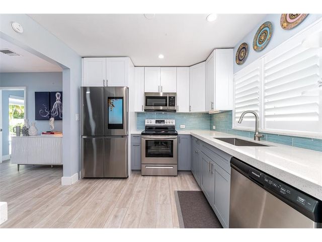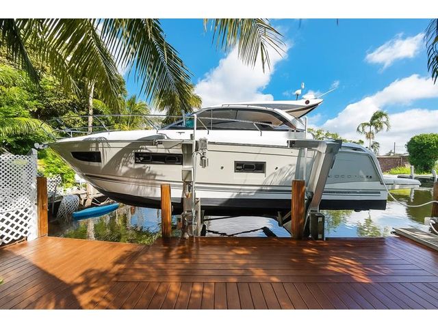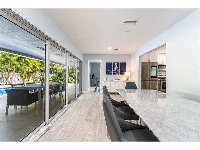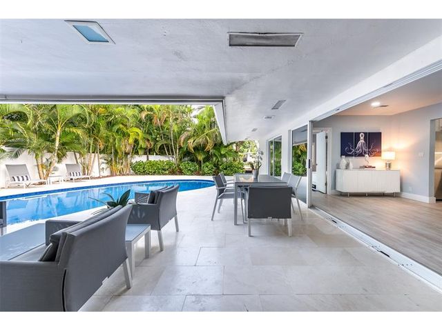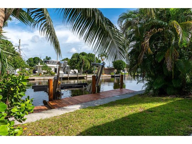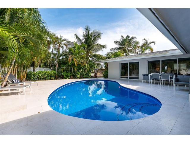 Fully renovated in 2021, this home has been updated for both comfort and style, giving 2,127 sqft of bright, open living space. A new roof, HVAC, and pool mechanicals installed in 2021 as well as hurricane impact glass sliders that flood interior with light and offer seamless access to your completely private outdoor retreat. Offers a 60ft dock and a 24,000lb boat lift, installed in 2023, for the ultimate boating experience with no fixed bridges offering direct ocean access. The new in-ground pool is surrounded by a newly installed marble patio and fenced yard designed with privacy and entertaining in mind. It features a 3/2 split-bed layout w/elegant touches-walk-in closet w/ custom cabinetry, custom kitchen cabinets and appliances, 2car garage, and laundry room with updated appliances.