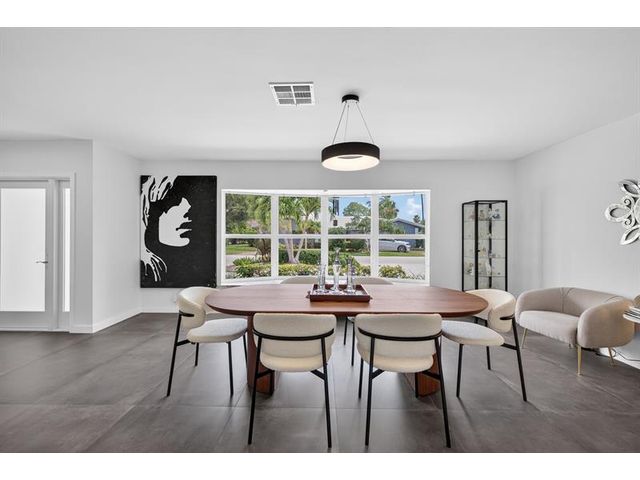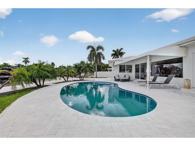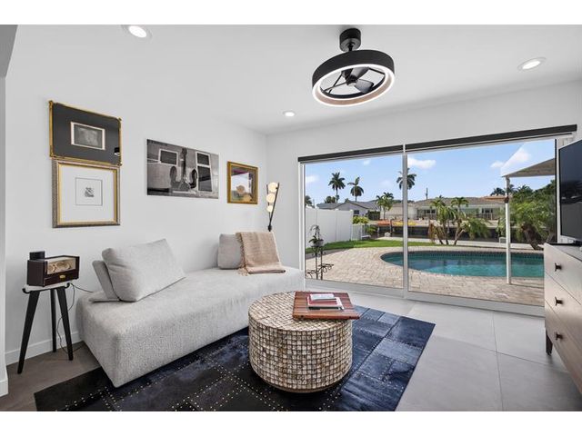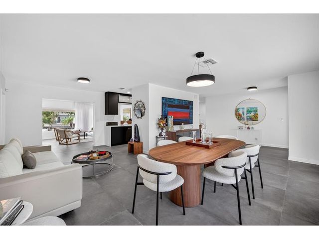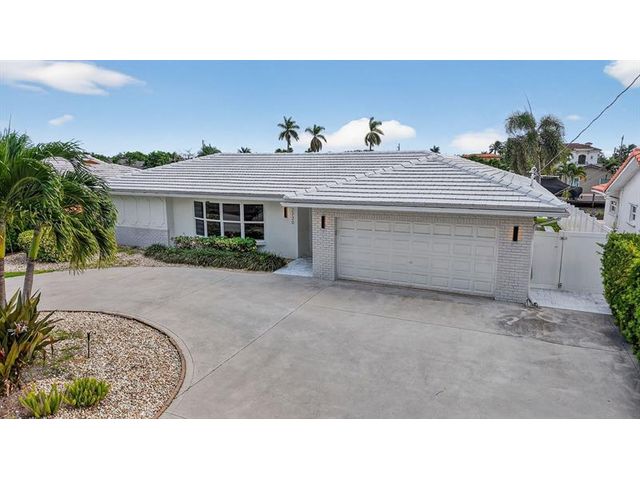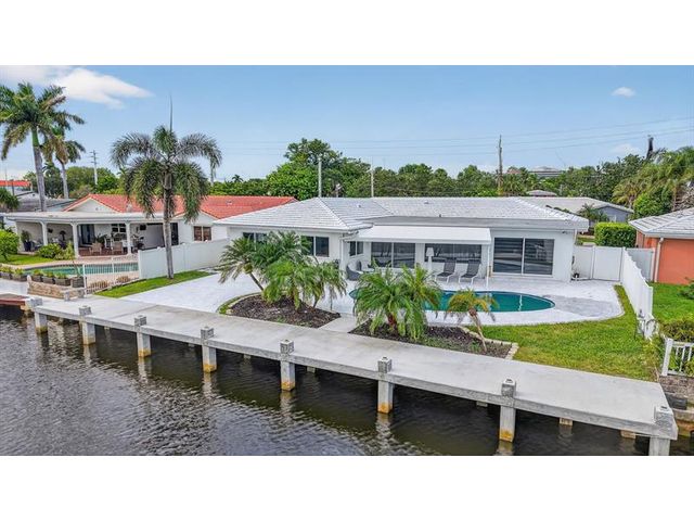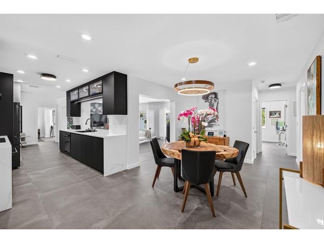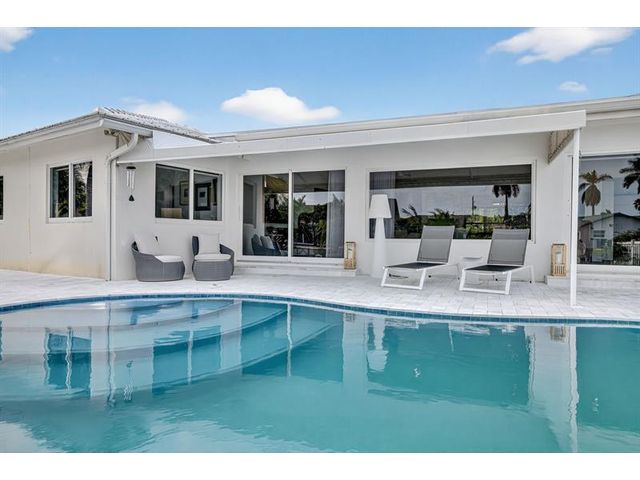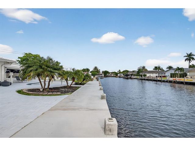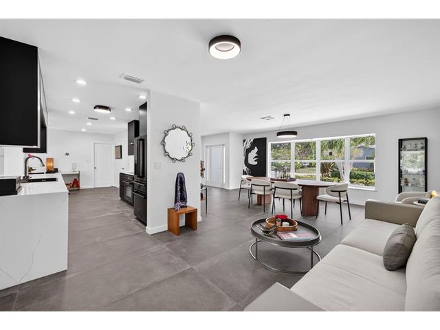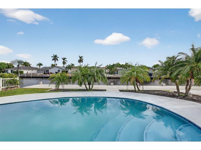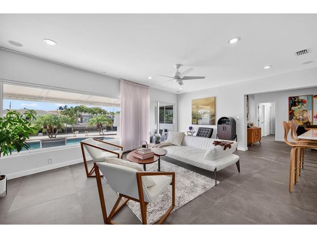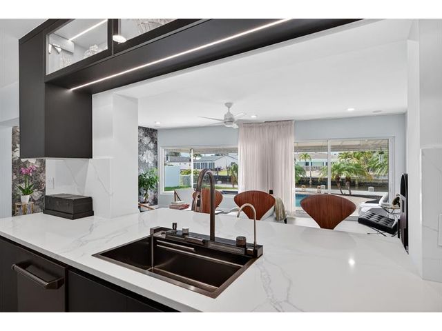 Nestled in Lake Estates, this fully renovated waterfront home has been meticulously crafted. From the striking chef’s kitchen with custom cabinetry, waterfall quartz counter, & top-tier ZLINE appliances, to the expansive open-living concept that seamlessly flows from one area to the next with an oversized slate grey porcelain tile. The primary bedroom features an en-suite bath, walk-in closet, & generous sitting area offering direct pool/water views through the impact sliding glass doors. 3 additional bedrooms & guest bath are positioned on the opposite wing of the home perfect for family/guests. The outdoor living experience is equally exceptional w/ brand-new pool, marble pool deck, concrete seawall & 75ft dock catering to the boating enthusiasts – offering ocean access w/1 fixed bridge.