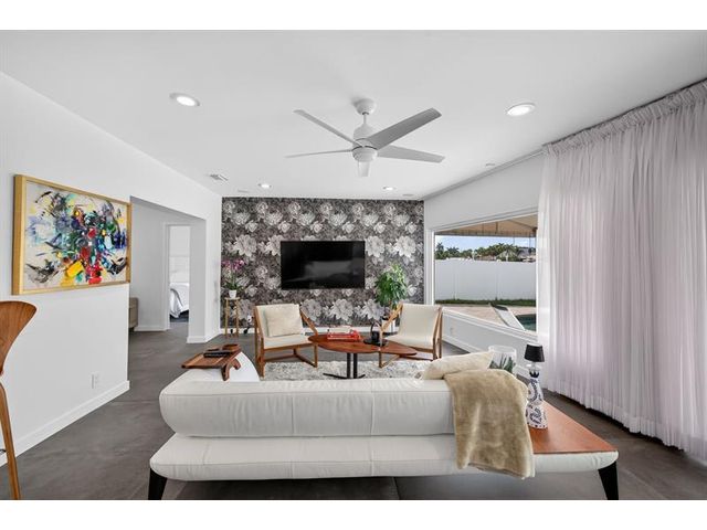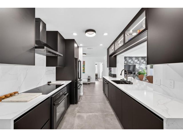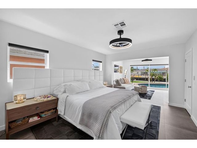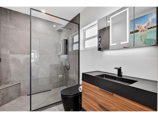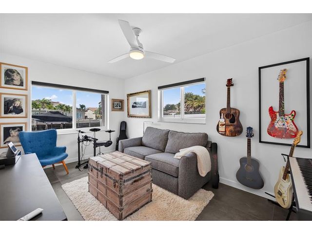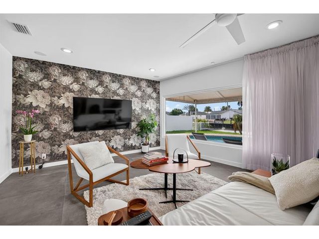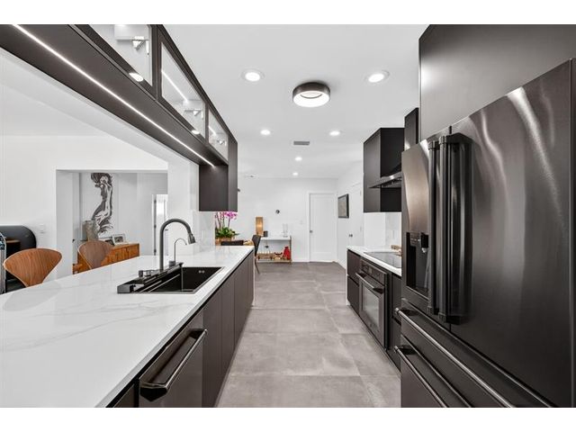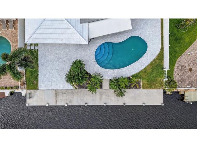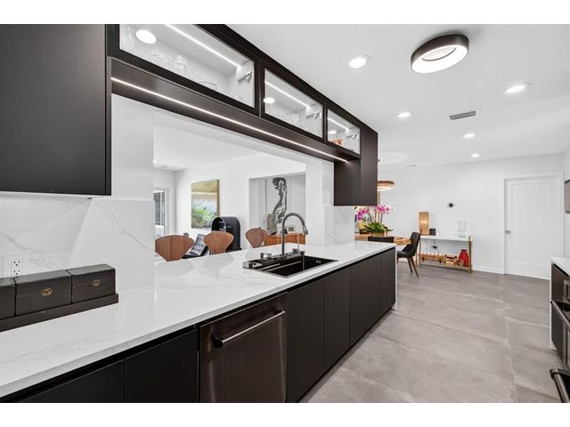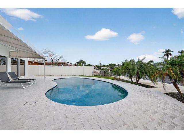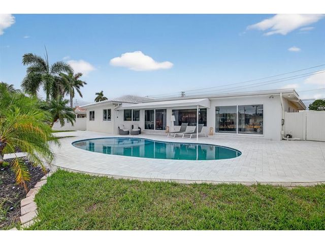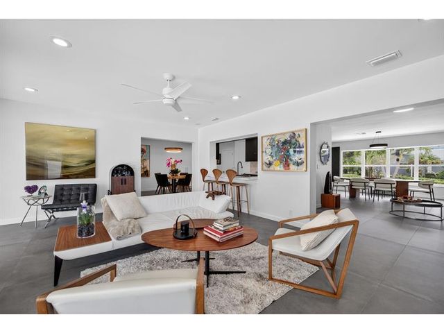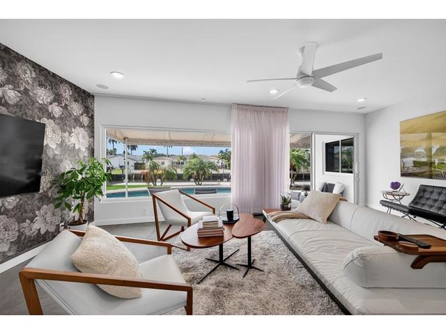 Nestled in Lake Estates, this fully renovated waterfront home has been meticulously crafted. From the striking chef’s kitchen with custom cabinetry, waterfall quartz counter, & top-tier ZLINE appliances, to the expansive open-living concept that seamlessly flows from one area to the next with an oversized slate grey porcelain tile. The primary bedroom features an en-suite bath, walk-in closet, & generous sitting area offering direct pool/water views through the impact sliding glass doors. 3 additional bedrooms & guest bath are positioned on the opposite wing of the home perfect for family/guests. The outdoor living experience is equally exceptional w/ brand-new pool, marble pool deck, concrete seawall & 75ft dock catering to the boating enthusiasts – offering ocean access w/1 fixed bridge.