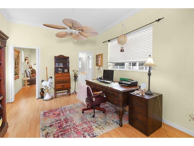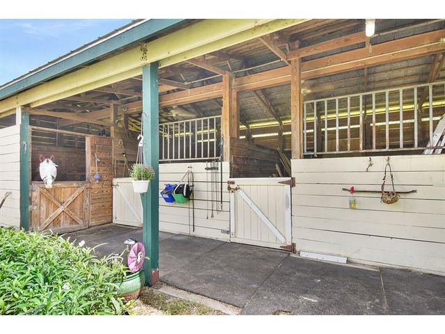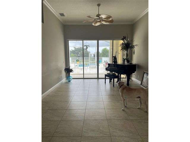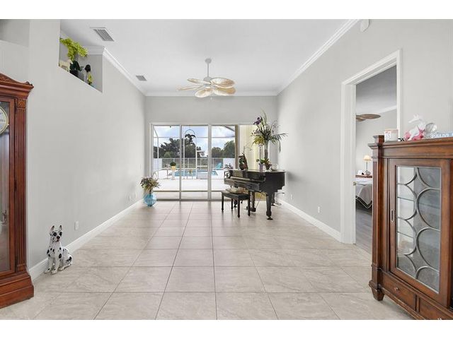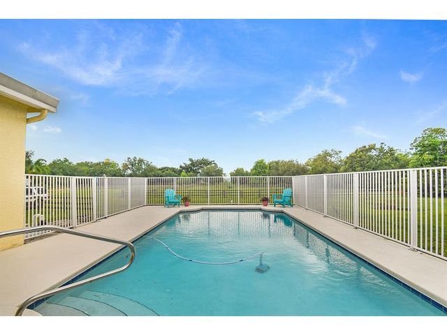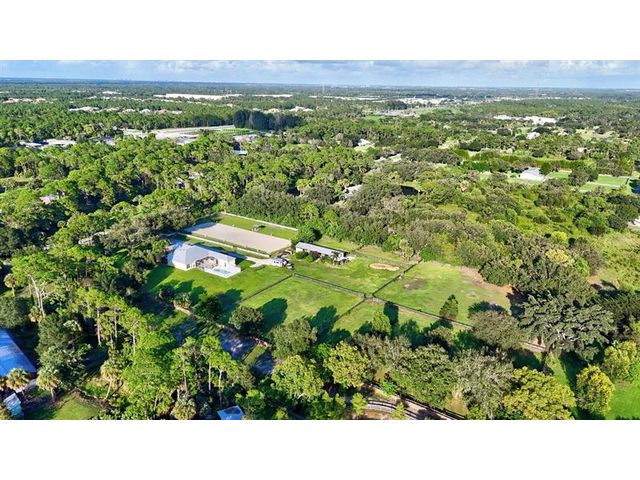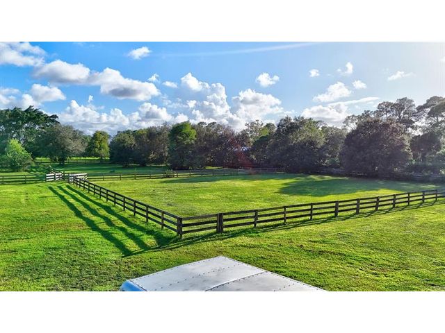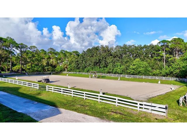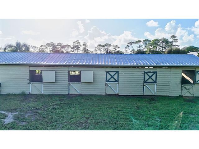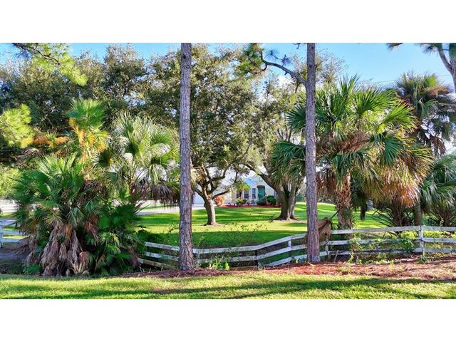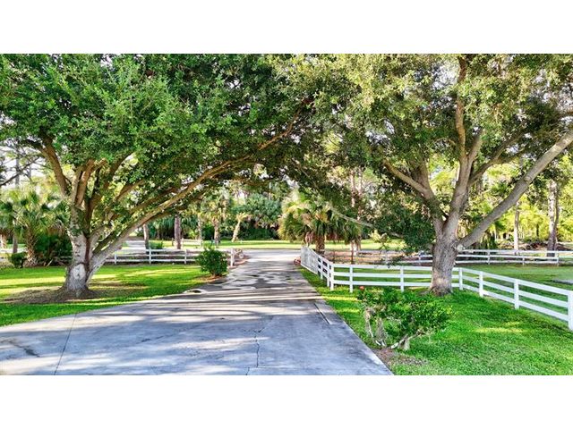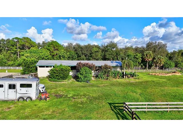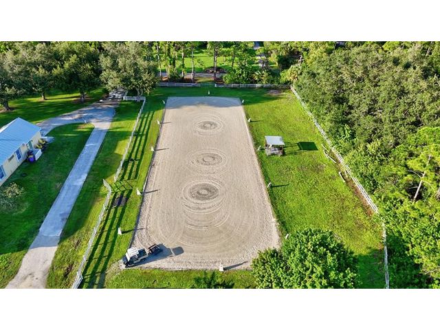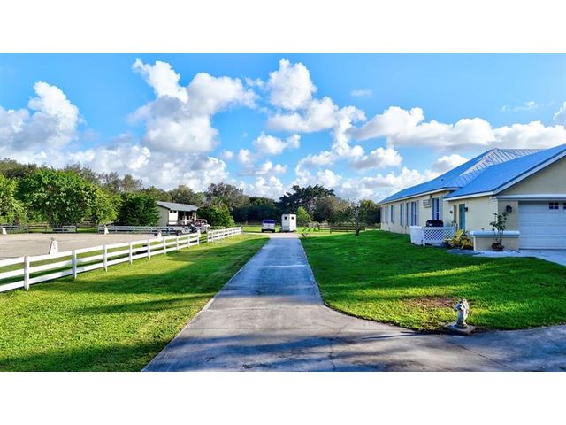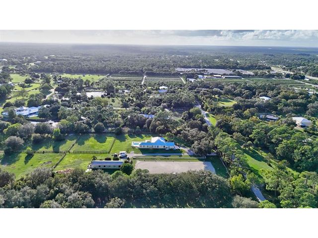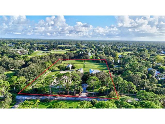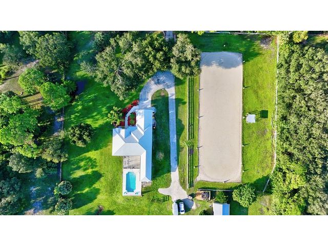 A remarkable find. Bring your dogs, cats, farm animals and horses. Don't forget get your kids. Plenty of room inside and out with 4 bedrooms, 3 baths and an extra bonus room or office. Entertain in the formal living room with pocket sliders that open up to a screened porch and pool .Relax in the spacious family room. The primary suite has been remodeled and the master bath offers a relaxing feel. The home boosts vaulted ceilings and 8 ft doors. The 5 acre property has a small 5 stall barn with tack/feed room and a riding area that has the best footing in Palm city and is fully fenced. The ring was put in by IDA Development. Let your animals enjoy 3 large grass paddocks and 2 small ones. Home is located on a dead end. Close to everything. A country feel without being far from anything