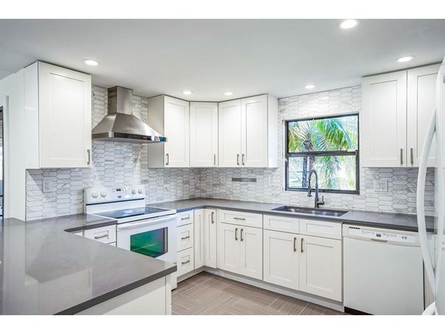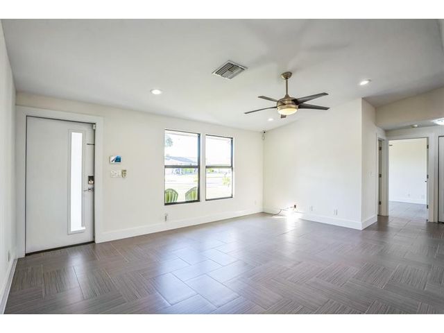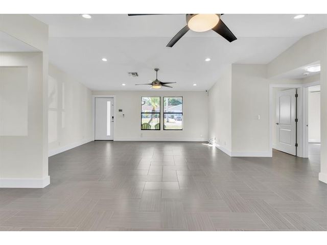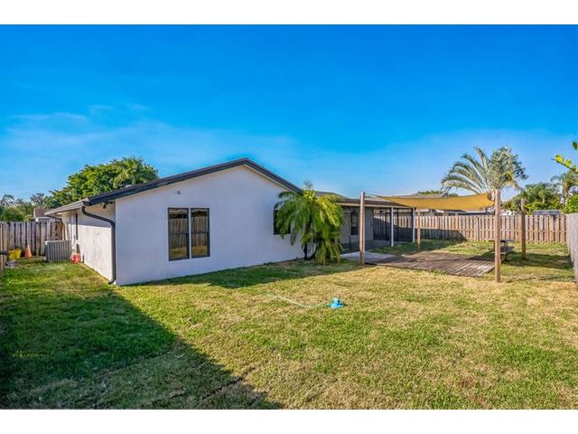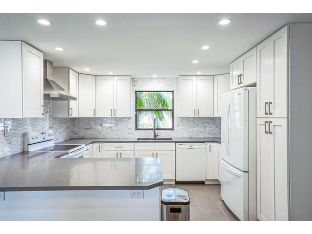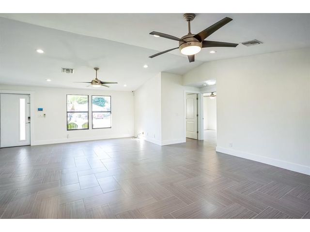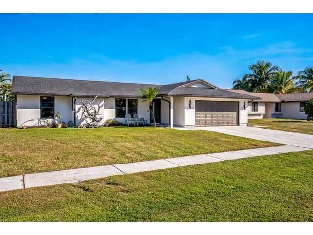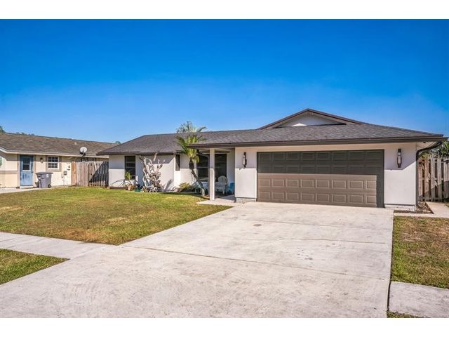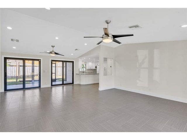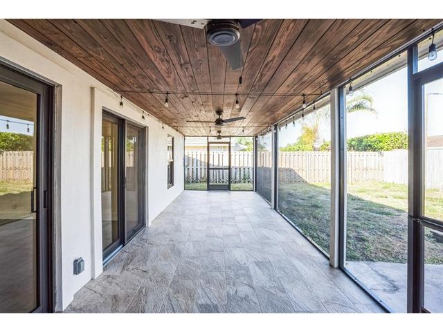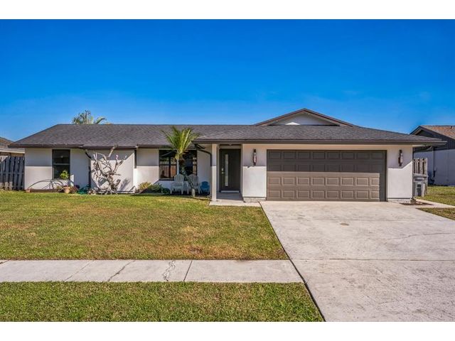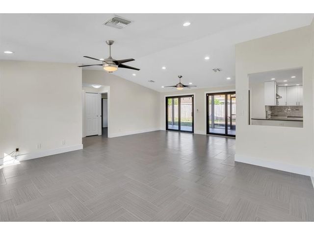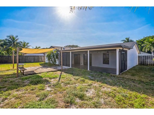 This beautifully renovated home features 3 spacious bedrooms and 2 elegant bathrooms. This home boasts an open floor plan with vaulted ceilings. Enjoy this beautiful South Florida winter on the cozy screened patio, perfect for entertaining or relaxing. Equipped with hurricane windows, a recently replaced water heater and roof installed in 2018. The large two car garage leads into a laundry room and from there into the main throughway. The master bathroom offers a seamless glass-enclosed step-in shower and a double sink. Ample closet space throughout, including a large master closet. Nestled in a quiet, family neighborhood and just 15 mins from the beach!