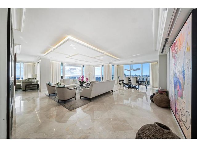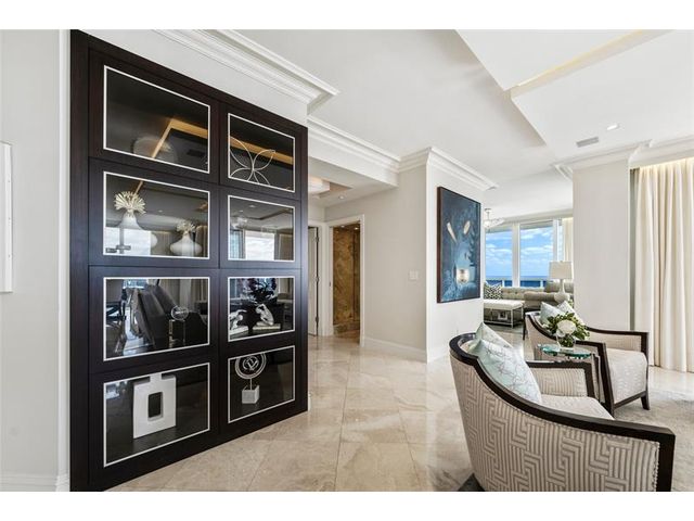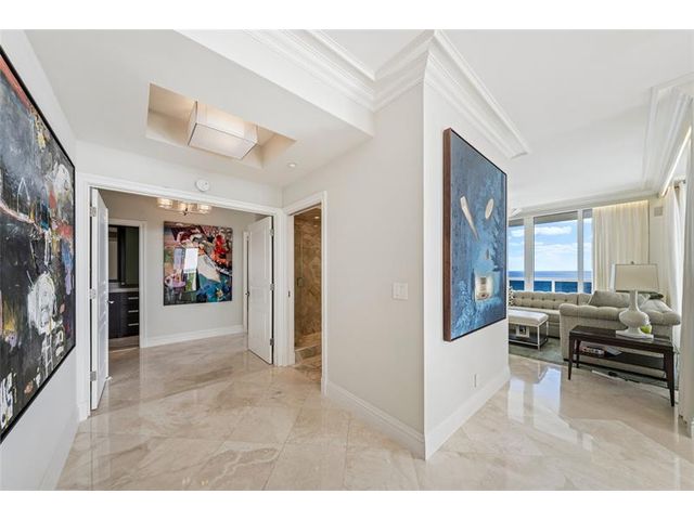 DIRECT OCEAN FRONT RESIDENCE, RARELY AVAILABLE, SPECTACULAR DIRECT OCEAN AND COAST LINE VIEWS, TRULY BEST SOUTHEAST VIEWS & FLOOR PLAN AROUND, Luxury living on the sand. Completely renovated with designer finishes. Open Floor plan,3 bedrooms plus office. Floor to ceiling Impact Glass, Private Elevator, private foyer, Smart home technology, new AV Equip & TV, Architecturally designed ceilings, customized automated window treatments, marble floors, 2 New AC units, 2 New HWH, New House Water Filtration system, tons of storage . This exquisite gated residence is situated on over 10 acres of lush landscaping with resort-like amenities, 2 pools, tennis courts, fitness center, private beach pavilion, cafe, spas, saunas, steam room, pet friendly, 2 Garage Spots,1 w/EV Charging Station
