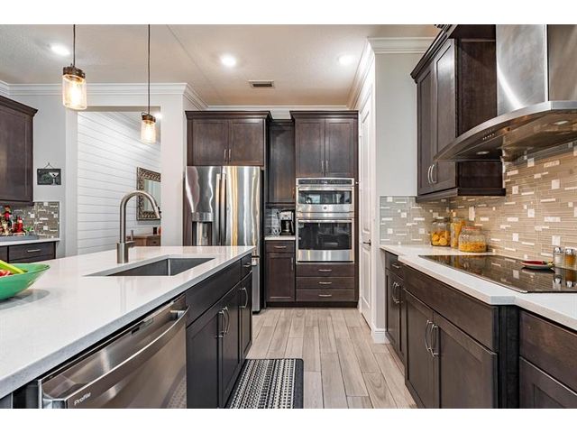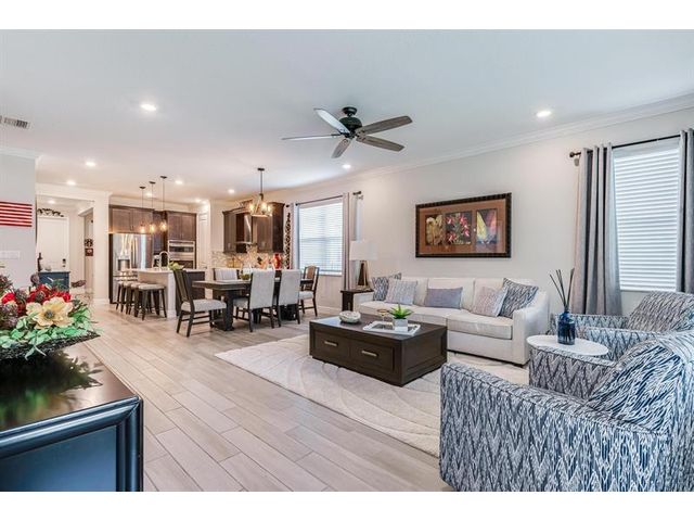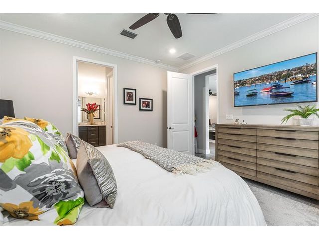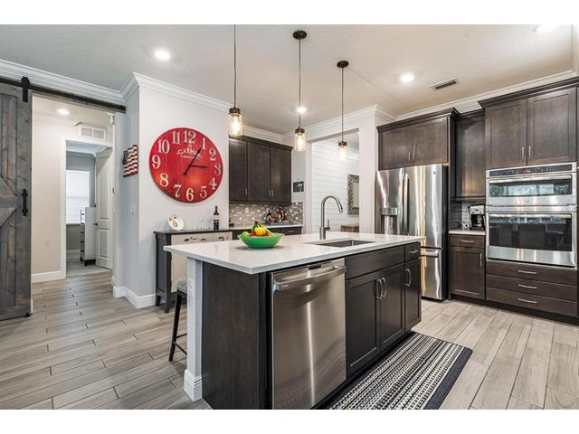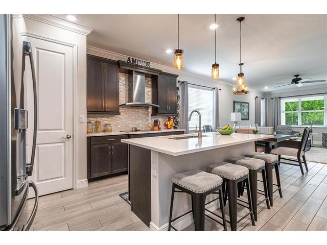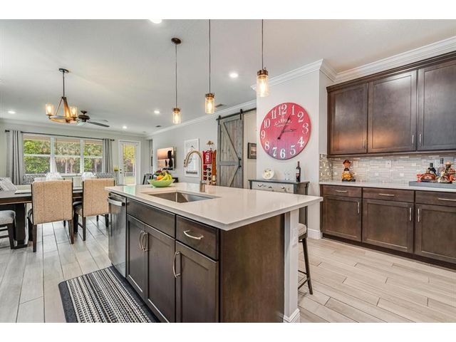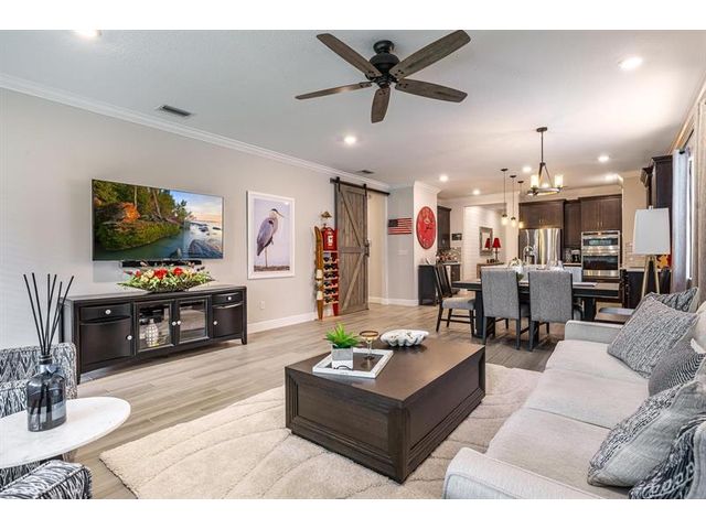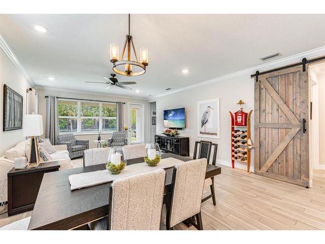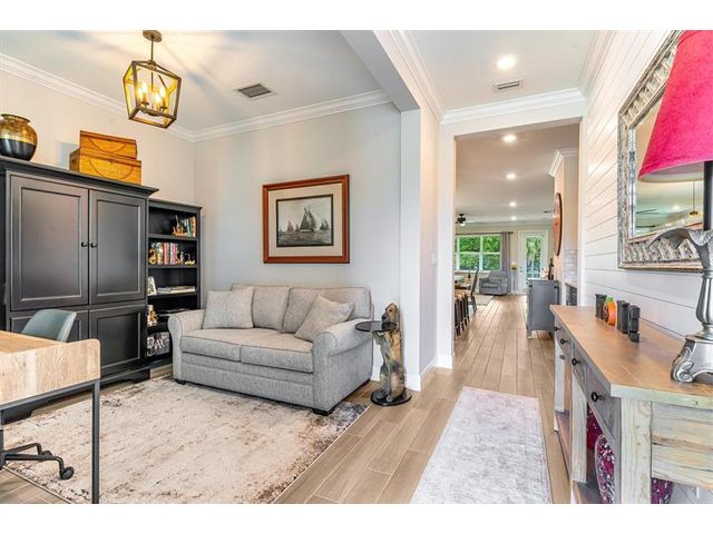 Rare WATERFRONT Pitoresco Model w/Craftsman Elevation in Sought-After Gated VELEIROS! 2/2+Bonus Rm (Convertible to 3rd Bdrm) & 2-Car Garage. Lushly Landscaped Front Porch (Perfect for Stargazing on a Balmy Evening) Opens to Foyer & Den. Ahead, Spacious Living Area w/Plank Tile, Hi-Hat Lights, Open Kitchen, GE Stainless Suite w/Wall Oven & Hood, Quartz Counters & Island, Pantry, Wood Cabinets. Sun-Soaked Great Room Overlooks Fenced Waterfront Yard w/Covered Paver Patio & Room for Pool. Owner Suite is a Hushed Sanctuary w/Ensuite Bath, Walk-in Closet. Barn Doors Open to Guest Quarters & Laundry Rm. Hurricane Impact Windows & Doors. Pets Welcome. Gym, Clubhouse, Pool, Playground, Onsite Mgmt. No worry of storm outages, same electrical grid as firehouse! Close to Beach, Supermarkets, Casino.