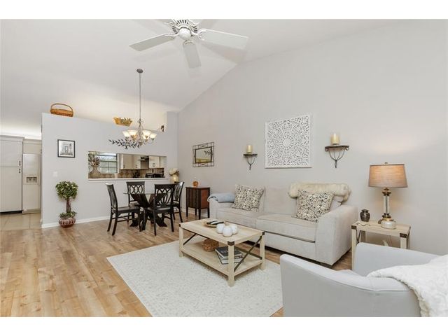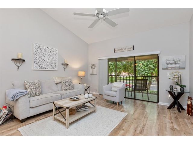 Welcome to Independence Bay, a resort-style, guard-gated community in Deerfield Beach offering a clubhouse, multiple pools, tennis, pickleball, basketball, fitness center, marina & scenic lakes with walking paths perfect for boating, kayaking, or relaxing strolls! This 2nd-floor condo with no upstairs neighbors features vaulted ceilings in the living area and primary bedroom, giving the home an open and airy feel. Additional highlights include laminate flooring throughout, updated bathrooms, accordion hurricane shutters and a large screened balcony. The association covers all amenities, guard gate, common areas, insurance, roof repairs/replacement, and cable (coming soon). Excellent location near I-95, Sawgrass Expressway, and just a short drive to the beach! Don't miss this opportunity!