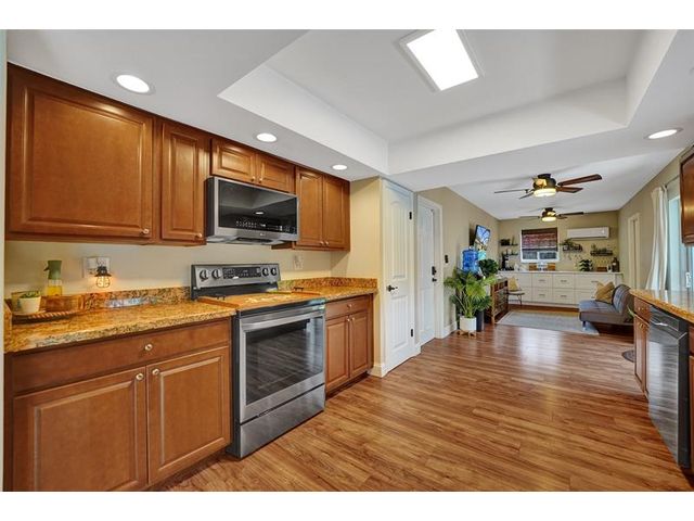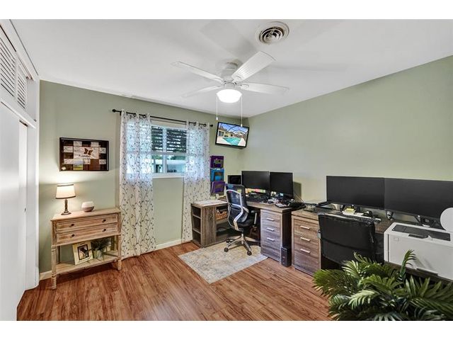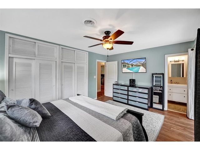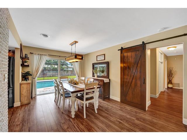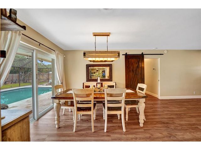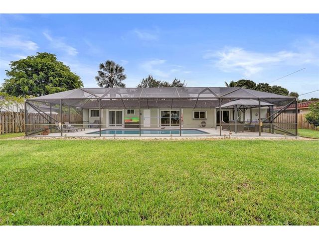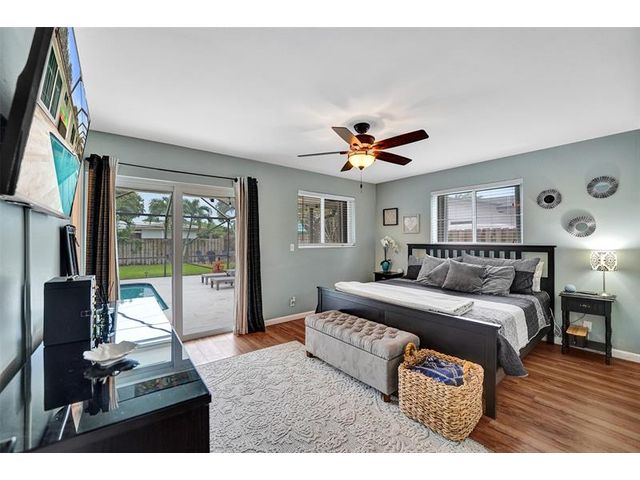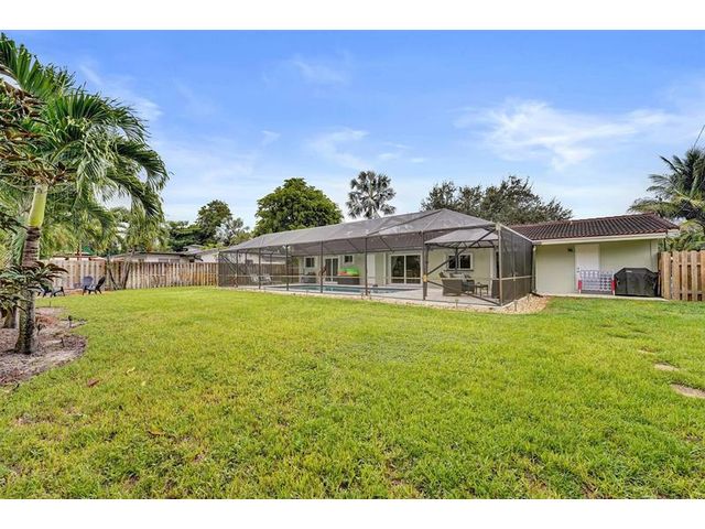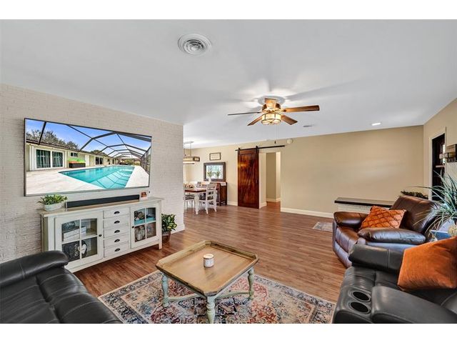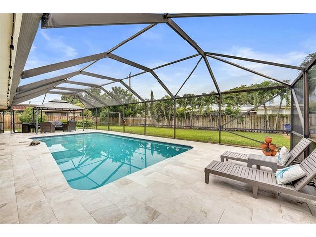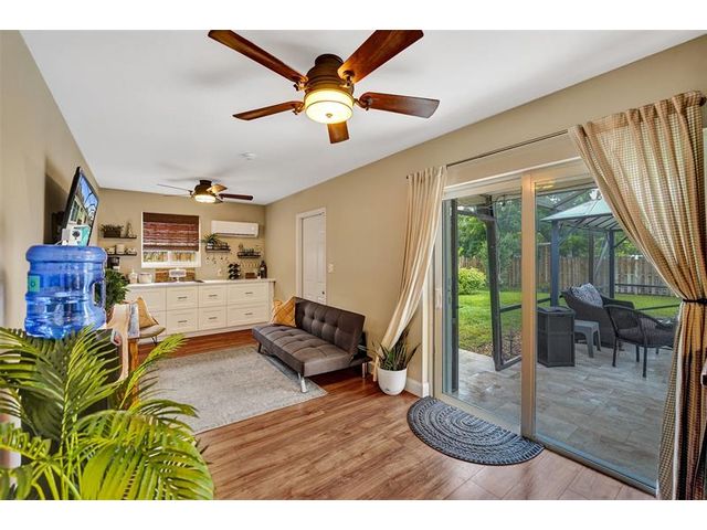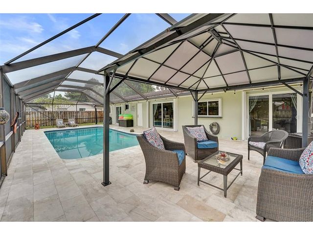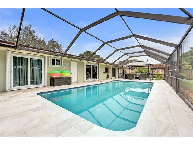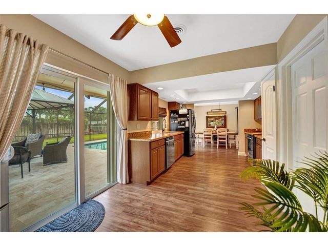 Step inside this exceptionally well-maintained 3BR/2BA contemporary home and fall in love with its open, airy feel and stylish updates. High-quality laminate wood plank flooring complements the plantation shutters and fully-applianced kitchen with granite counters and generous cabinetry. The primary en-suite offers a modern bath with walk-in shower, while the secondary bedrooms are comfortably sized, and guest bath features double sinks and tub. Enjoy peace of mind with impact windows, doors, accordion shutters and a generator-ready connection. The backyard oasis invites you to relax by the newly renovated saltwater pool or gather around the fire pit. With a screened patio, circular drive, two-car garage and neutral tones - this home truly has it all. You will want to check it out!