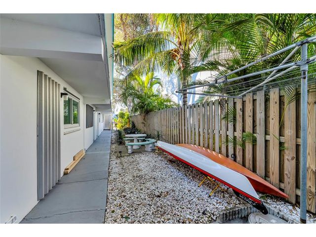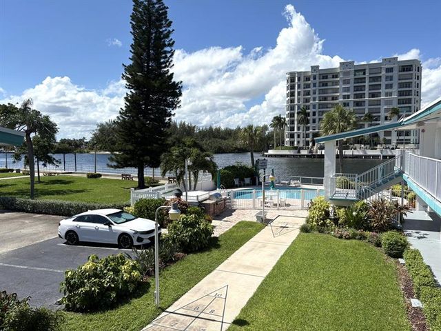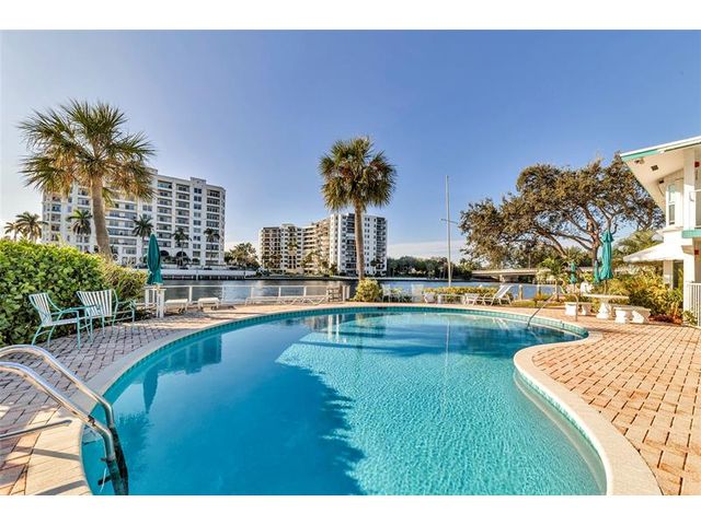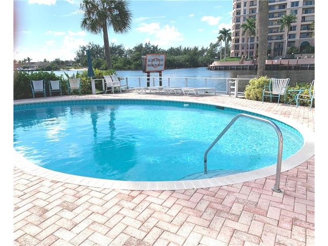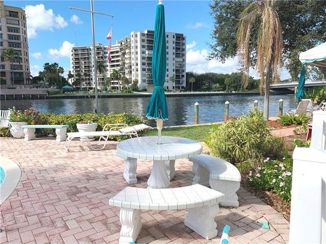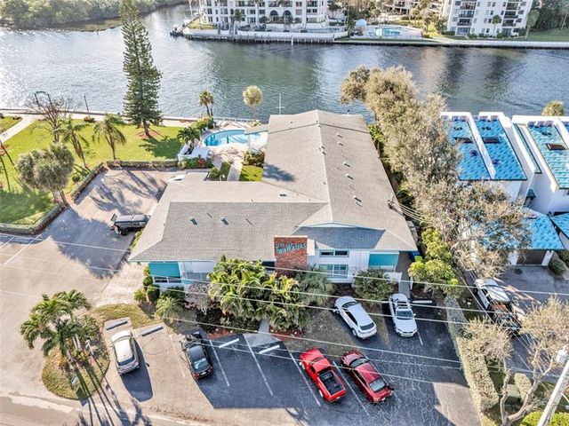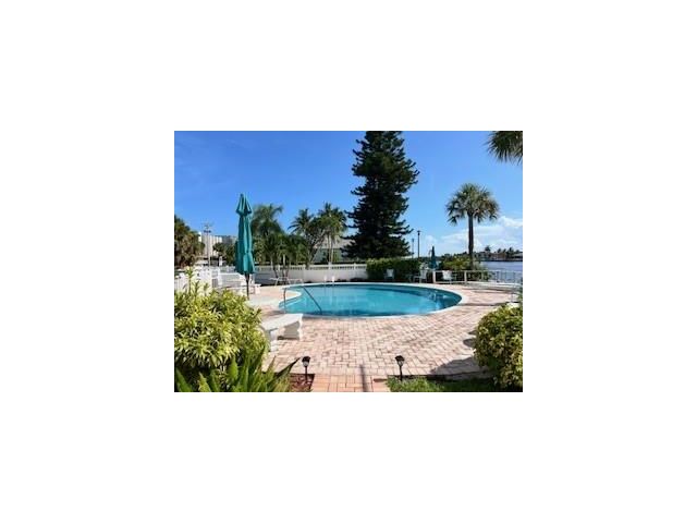 Charming boutique building with only 16 units. Enjoy the boats passing by on the Intracoastal every day from the heated community pool and patio. Move right into this renovated 1BR/1BA unit on the second floor. Open kitchen with breakfast bar has new cabinets & quartz countertops. Impact windows. Renovated Bathroom. Just a block to the beach and close to dining, etc. City Park next to the building. Amenities include common laundry, storage room, BBQ area, shuffleboard, drop off/pick up community dock. Maintenance fee including Land Lease is $1,540/quarter. Tray ceiling in kitchen. Sorry no pets and no leasing. By-Laws say owner must be 45 to purchase/live at Twin Waters.