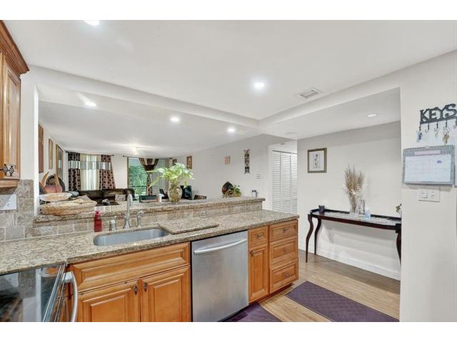 Rarely available ground condo unit! Spacious 2 bedrooms, 2 baths. Well, maintained, ready to move in, offers the perfect blend of convenience, comfort, and style. Upgraded kitchen lots of cabinets & quartz counter space, pantry, stainless steel appliances, breakfast area. Lots of natural light. Spacious master bedroom with large walk-in closet. 2nd bedroom with large closet. Washer & dryer in the unit. Located in a well maintained 55 + community with many amenities. MUST OWN 1 YEAR BEFORE RENTING Seller is Motivated.