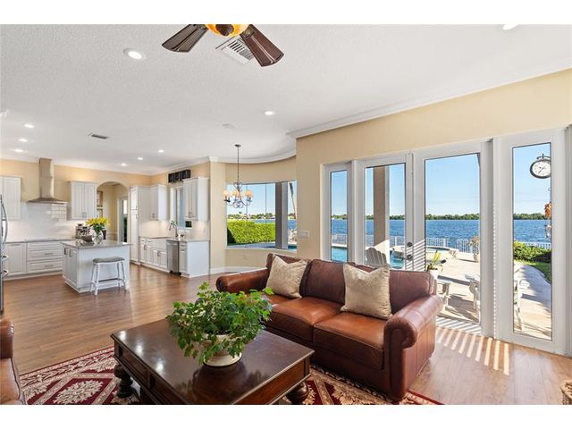 Enjoy stunning 1-mile lake views from this beautifully updated home featuring a remodeled kitchen with new appliances, luxury vinyl flooring throughout, and all high-grade impact windows and doors, one bedroom at the first floor and 2 master suites with balconies at the second floor. Step outside to a heated pool with new Diamond Brite resurfacing and travertine decking, perfect for relaxing or entertaining. Two new A/C units ensure year-round comfort. This home is a rare find, combining luxury, functionality, and panoramic lakefront beauty in one extraordinary package.