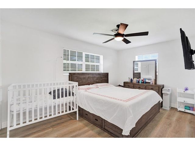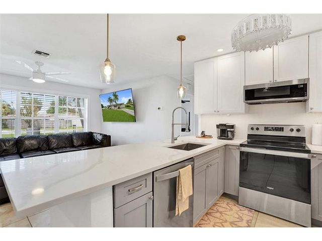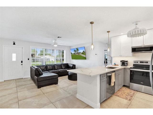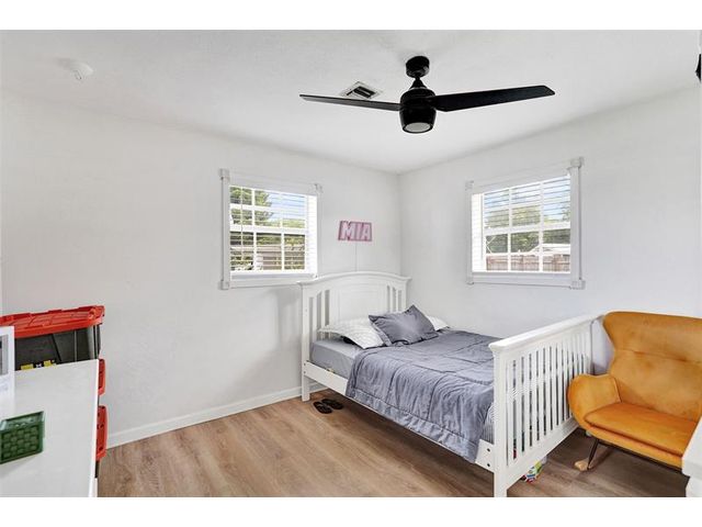 Move-in ready 2-bedroom, 1-bath single-family home situated on a corner lot with no HOA. Features include a newer roof, impact windows, and a bright open floor plan. The remodeled kitchen boasts quartz countertops, stainless steel appliances, white shaker cabinets, and pendant lighting. The backyard is fully fenced with plenty of space for a pool, patio, or playset. Additional highlights include a covered carport, outdoor sitting area, and storage shed. Close to schools, parks, and shopping.