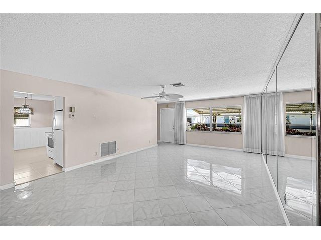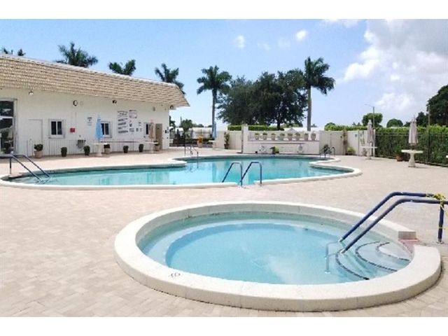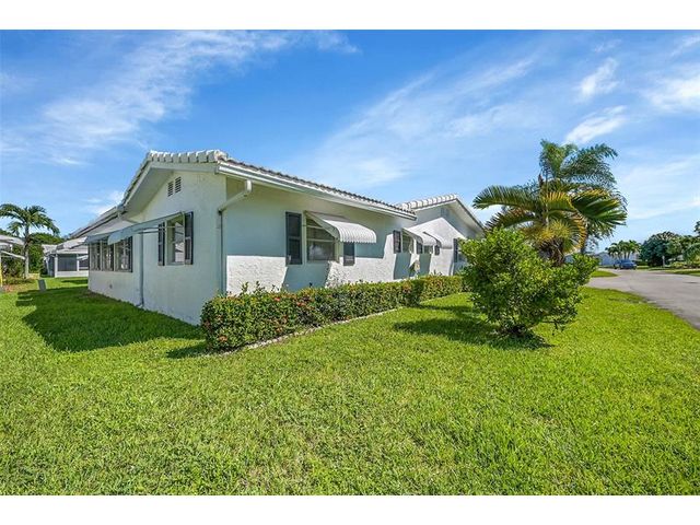 Lovely Corner Leisureville Home (55+) located just east of Congress and South of Woolbright. 2/2 with Open layout, tile flooring throughout (No Carpet). Enclosed Patio with windows, enjoy fresh air or close windows for additional indoor room. Outside area to enjoy as well. Active community with Bocce Ball, Billiards, Swimming Pools, Hot Tub, Shuffleboard, 3 Par/9 Hole Golf Course (No Additional Charge) Entertainment activities, Gym, BBQ Area and so much more. Low HOA includes: Cable, Lawn & Irrigation!