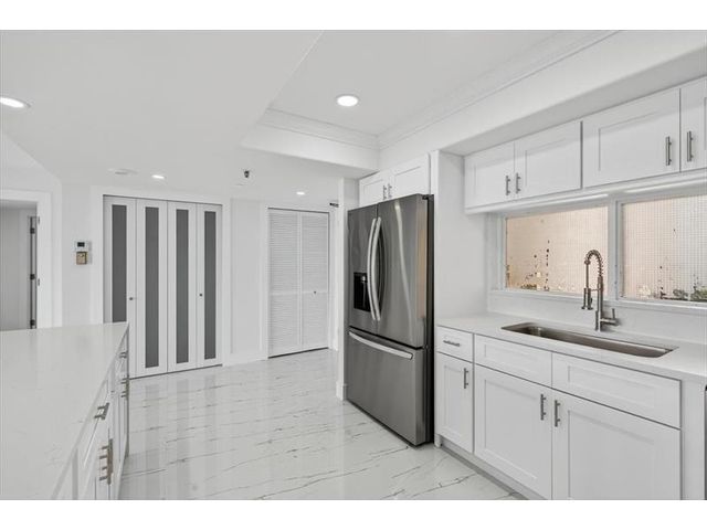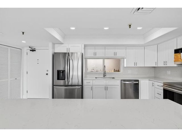 Experience modern living in this stunning 2-bedroom, 2-bath condo perched on the 9th floor with breathtaking east-facing lake views. Located in the heart of West Palm Beach, Florida, this fully renovated residence combines comfort, style, and convenience. Step inside to find an open-concept layout with elegant finishes throughout. The sleek kitchen features updated cabinets, quartz countertops, and stainless steel appliances. Impact windows and doors provide peace of mind and fill the unit with natural light, creating a bright and airy atmosphere. Enjoy your morning coffee on the private balcony overlooking the serene lake. The primary suite offers a spacious retreat with plenty of room for relaxation or entertaining.