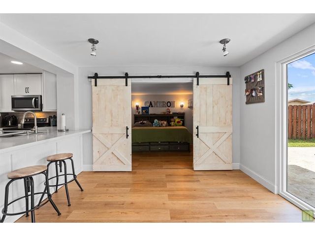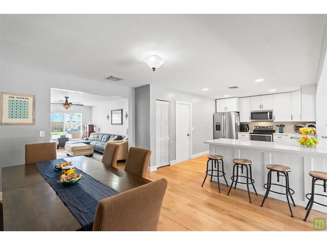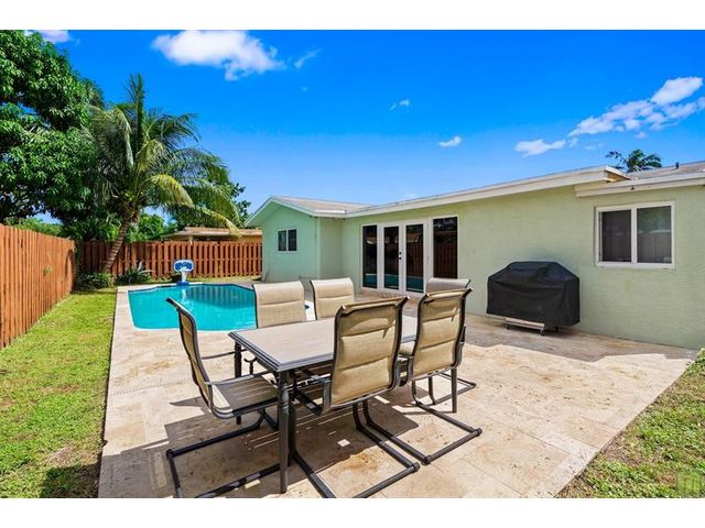 Beautifully updated, move-in ready pool home in the popular neighborhood of Palm Aire Village West. You'll feel a wam welcome from the minute you walk in the front door. Bright, open floor plan with white Oak LVP flooring throughout, gorgeous open kitchen with white shaker cabinetry, quartz countertops, stainless steel appliances and enough bar seating for a small Realtor convention! Primary bedroom has HUGE walk-in closet & en-suite bathroom. Two additional sun-filled bedrooms, main bathroom with shower & tub, large family / Florida room overlooking the newly updated pool and travertine patio. There's also a fantastic den / office that is currently being used as a 4th bedroom. No worries about FL storms with full impact windows and doors. No HOA - one of the best central Broward locations