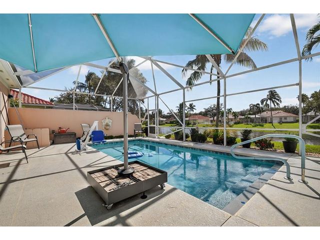 Welcome to Riverwalk! This Oakmont checks every box; New Roof, Impact Doors, Private Heated Saltwater Pool, Waterfront home, huge screened in patio & professional landscaping. Your new home has 3 bedrooms & an office/den which could be a fourth bedroom should you desire. From the entry, walk in to 12 ft. ceilings, adorned w/crown moulding & recessed lighting throughout. See 18 ft of impact glass doors for a clear lake & pool view. The two sets of triple pocket sliding doors create a true indoor/outdoor living space right in your home. Riverwalk offers a luxury lifestyle without the membership price. Offers Fitness Center, Tennis, Pickle Ball, Yoga, plethora of clubs, and a restaurant. Located in the heart of Palm Beach West, a short drive to beach, downtown, airport, fine dining, shops.