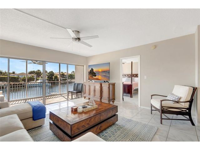 Paradise awaits in this GORGEOUS waterfront condo located at River House Towers in Deerfield Bch! Enjoy breathtaking river views from this REMODELED 2 bedrm, 2 bath condo featuring an open floor plan, split bedroom plan & tile flrs thru-out. White kit w/shaker cabs, corean cntr tops & subway backsplash! Both beautifully renovated bathrms have glass shower doors! Unit comes nicely furnished w/King bed in both rms & 3 flat screen tv's. Screened patio overlooks ENDLESS WATER VIEW & STUNNING SUNSETS! Enjoy peace of mind w/accordion shutters on windows & balcony, covered pkg & no age restrictions! Bldg passed 40 yr inspection! Amenities incl pool, clubhouse w/fitness cntr, hotwire TV/Internet incl & boat dockage when available! Min to shopping, restaurants, fishing pier & beach! WELCOME HOME!