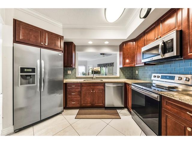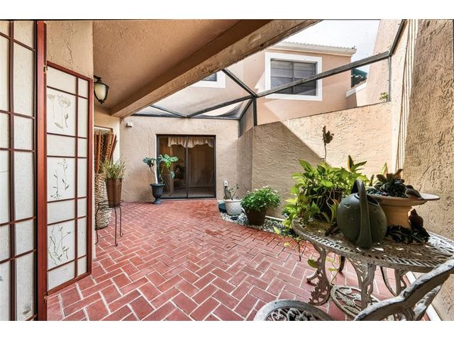 This is it! Lovely first-floor, corner unit in desirable Villa Sonrisa of Boca Pointe Pointe. This spacious unit is uniquely situated for those who love natural light and the outdoors...featuring two enclosed patios, including a sun-soaked atrium, as well as a wrap-around porch; and windows/sliders in nearly every room! Enjoy the split bedroom plan, including a third room that can serve as a lovely office or den! Outstanding features include large, open kitchen w/ stainless steel appliances, granite countertops & raised wood cabinets; 24x24 tile floors in living areas & wood flooring in bedrooms; newer appliances; newer roof interior laundry; walk-in closet, single-car garage w/ direct entry to home/patio, & more! Highly-sought, guard-gated Boca Pointe offers optional club membership.