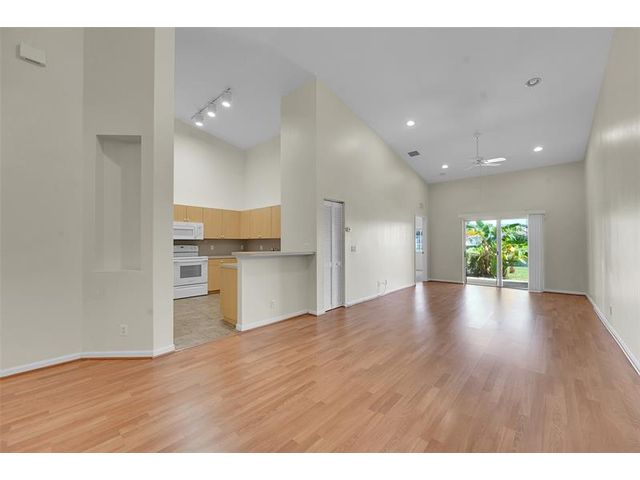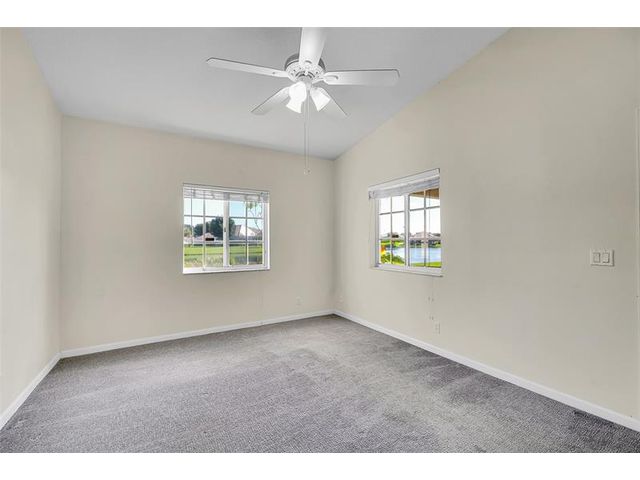 Enjoy resort-style living in this spacious 2-bed, 2-bath villa nestled within a peaceful, guard gated, 55+ community. The open layout features elevated ceilings and serene lake views, offering the perfect canvas for your personal updates. The unit has an attached 1 car garage with washer dryer and in the backyard enjoy a covered patio overlooking the lake. Residents enjoy an active lifestyle with access to three sparkling pools, tennis and pickleball courts, a fitness center and a large clubhouse ideal for hosting social activities. Whether you're walking or simply relaxing by the lake, this tranquil setting blends comfort, recreation, and community living at its best.