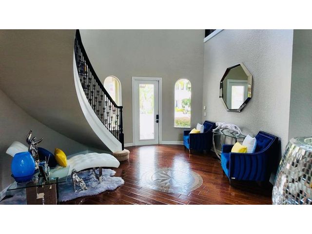 Turn-Key Luxury in San Messina Pool, Furnished, In-Law Suite & Home Gym Discover this fully furnished, move-in-ready estate in the sought-after San Messina community, offering approximately 4,500 sq ft of elegant living, including a screened pool, in-law suite, and private home gym. Step into a dramatic great room with 24-foot ceilings and floor-to-ceiling windows that fill the home with natural light and showcase the pool and tropical landscape. The open-concept design connects the kitchen, family room, and outdoor living space, creating seamless flow for entertaining and relaxation. The chef’s kitchen features granite countertops, custom cabinetry, built-in appliances, and a large island that opens to the family room. Just beyond, sliding doors lead to the screened patio and pool,
