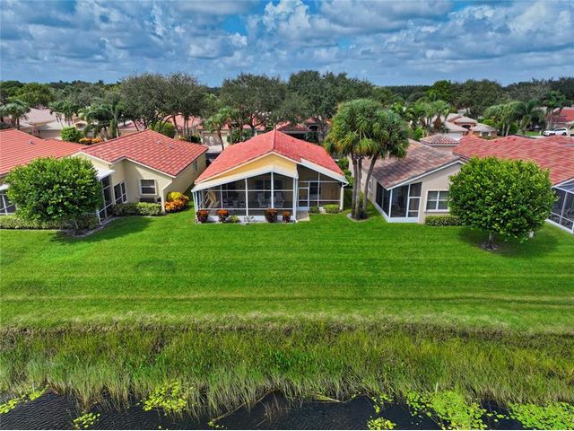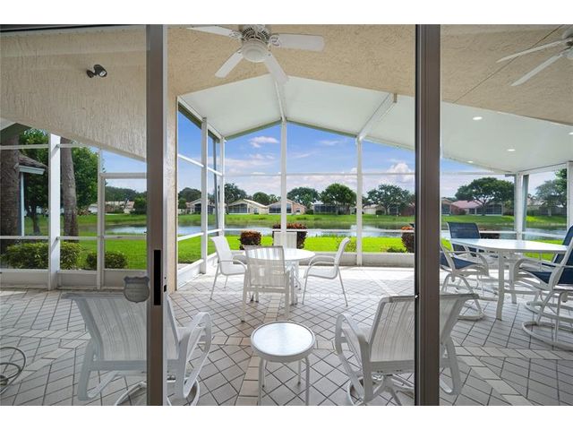 Beautifully updated and move-in ready, this unique open-concept 2-bathroom, 2 bedroom home plus den offers comfortable living in a serene setting. The upgraded kitchen and bathrooms feature modern finishes and thoughtful design. Enjoy peaceful water and fountain views from the oversized screened-in patio- perfect for relaxing or entertaining. The unique open floor plan provides a bright, airy feel, and the den offers ideal space for an office, hobby room, or guest area. Located in a sought-after 55+ community known for its active and fun lifestyle, this home also features a new roof and recent updates, making it a truly turn-key and distinctive home.