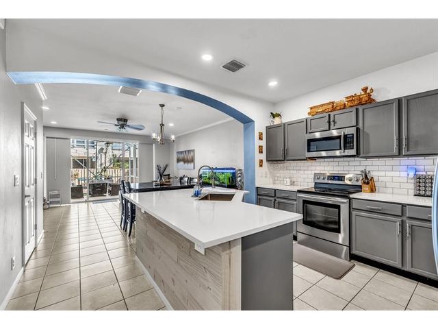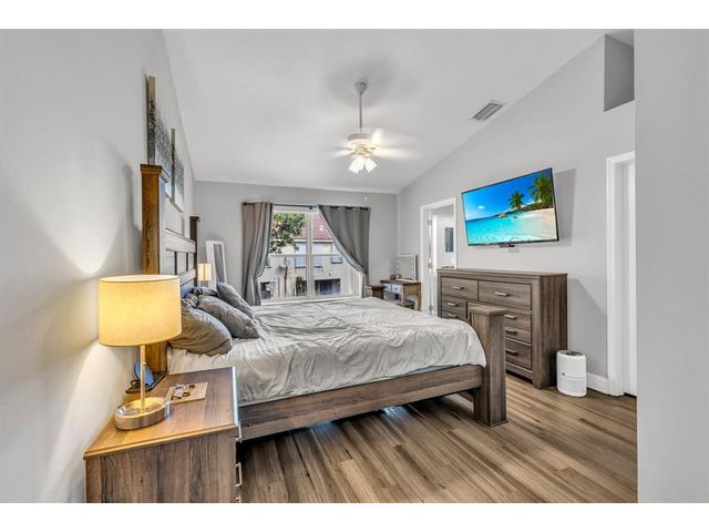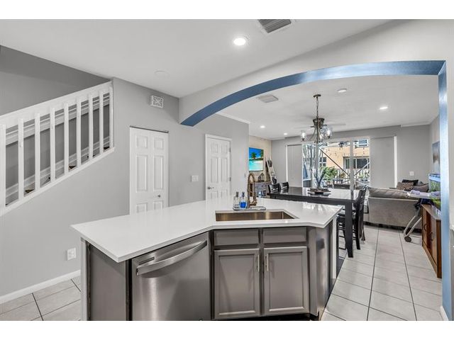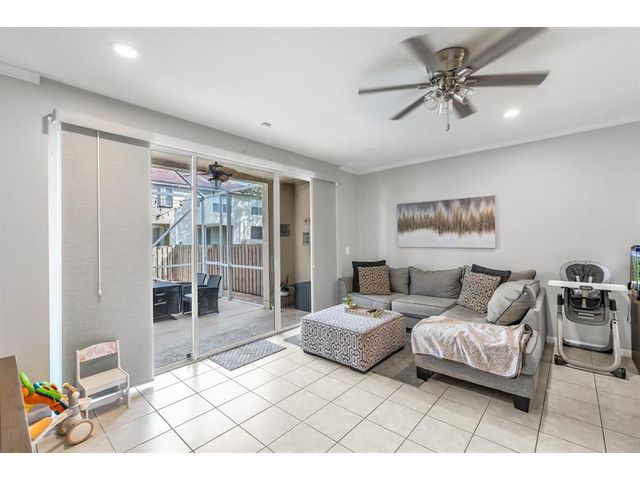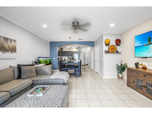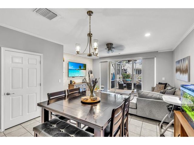 OPEN & BRIGHT, BEAUTIFUL TH WITH GARAGE IS PERFECT FOR A NEW COUPLE OR FAMILY. KITCHEN HAS BEEN UPDATED, OPEN CONCEPT WITH LARGE ISLAND, VAULTED CEILINGS & CROWN MOLDING. GREAT FOR ENTERTAINING. SCREENED REAR PORCH, WITH PAVERS AND PRIVACY FENCE. ALL TILE DOWNSTAIRS. STAIRS AND UPSTAIRS ARE WOOD LOOKING VINYL LAMINATE, GREAT DURABILITY AND CLEAN LOOK. LAUNDRY UPSTAIRS. OVERSIZED MASTER SUITE HAS 2 WALK-IN CLOSETS & WALK IN SHOWER IN MASTER BATH. 2ND BEDROOM IS SPACIOUS WITH A LARGE WALK-IN CLOSET. NEW A/C 2023, NEW WATER HEATER 2025. ACCORDIAN SHUTTERS THROUGHOUT. PRIME LOCATION & MOVE IN READY!
