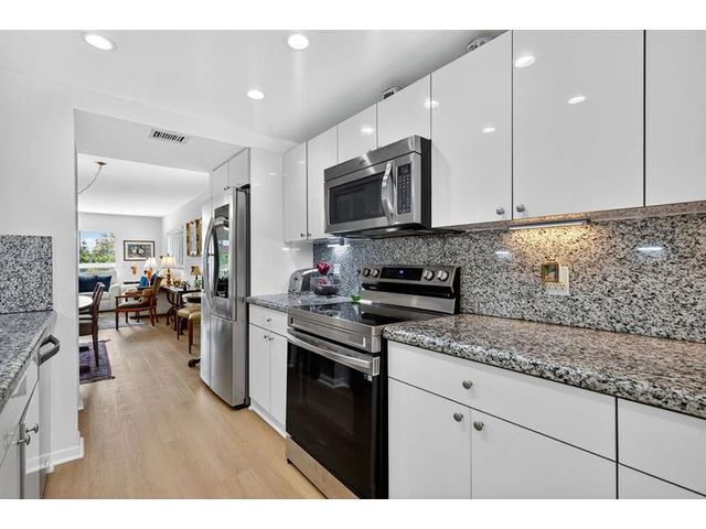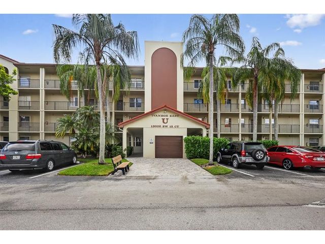 Amazing green garden views from this beautifully maintained corner Magnolia model! Bright, spacious, and tastefully updated, impact windows throughout, vinyl floors, and honeycomb electric shades. Remodeled kitchen with granite countertops, stainless-steel appliances, recessed lighting, a double sink, pantry, and reverse osmosis water system. Enclosed balcony extends the living room, offering additional interior square footage and a perfect space to relax or entertain. Master bedroom with walk-in closet and a remodeled bathroom with a walk-in shower and dual vanities. Newer A/C and water heater, parking space right across from the elevator. Located between 2 pools, close to the Pembroke Road back gate. Association fee covers cable, internet, water, insurance, roof, and all amenities.